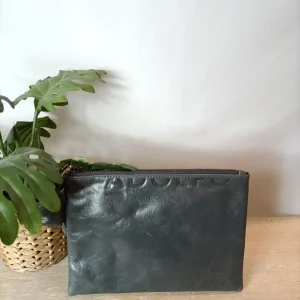 ADOLFO DOMINGUEZ. Cartera de mano piel gris