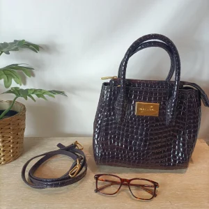 BIMBA Y LOLA. Bolso piel color berenjena oscuro