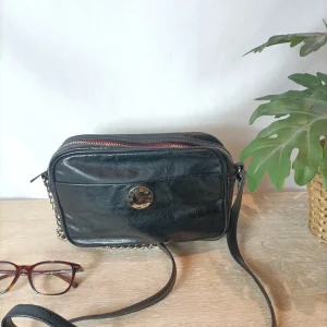 BIMBA Y LOLA. Bolso negro piel brillo.