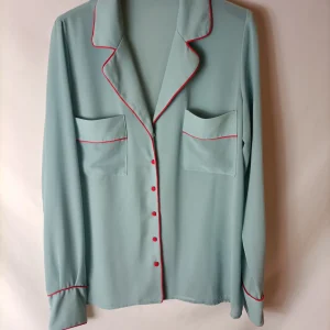 BIMANI. Blusa verde agua ribete T.m