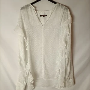 BERSHKA. Blusa blanca semitransparente flores. T S