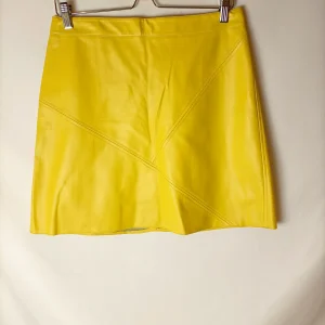 ZARA. Falda polipiel amarilla. T L