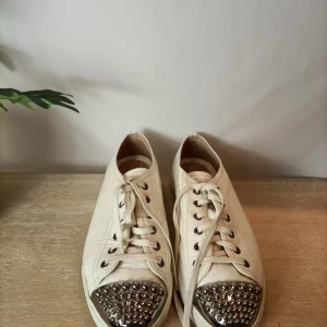 MIU MIU. Zapatillas charol con tachuelas en blanco. T 39