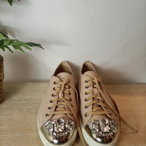 MIU MIU. Zapatillas charol con pedrería. T 40