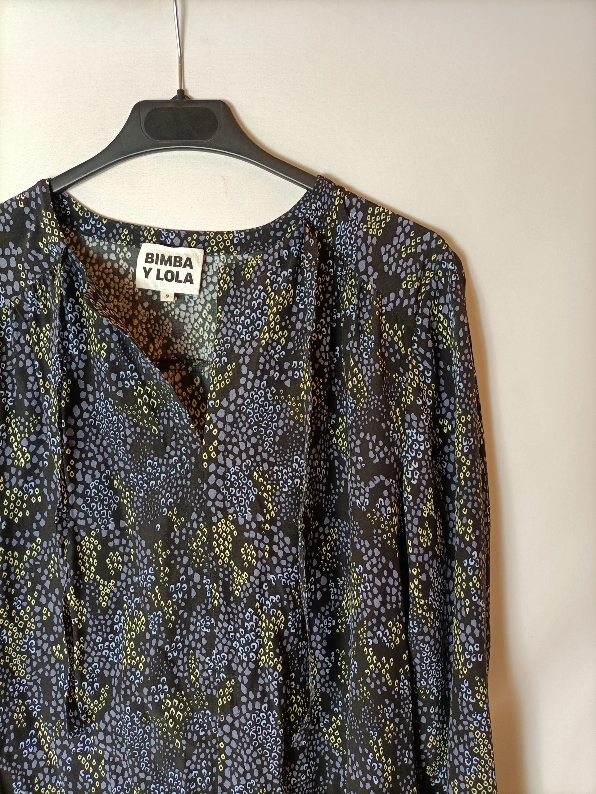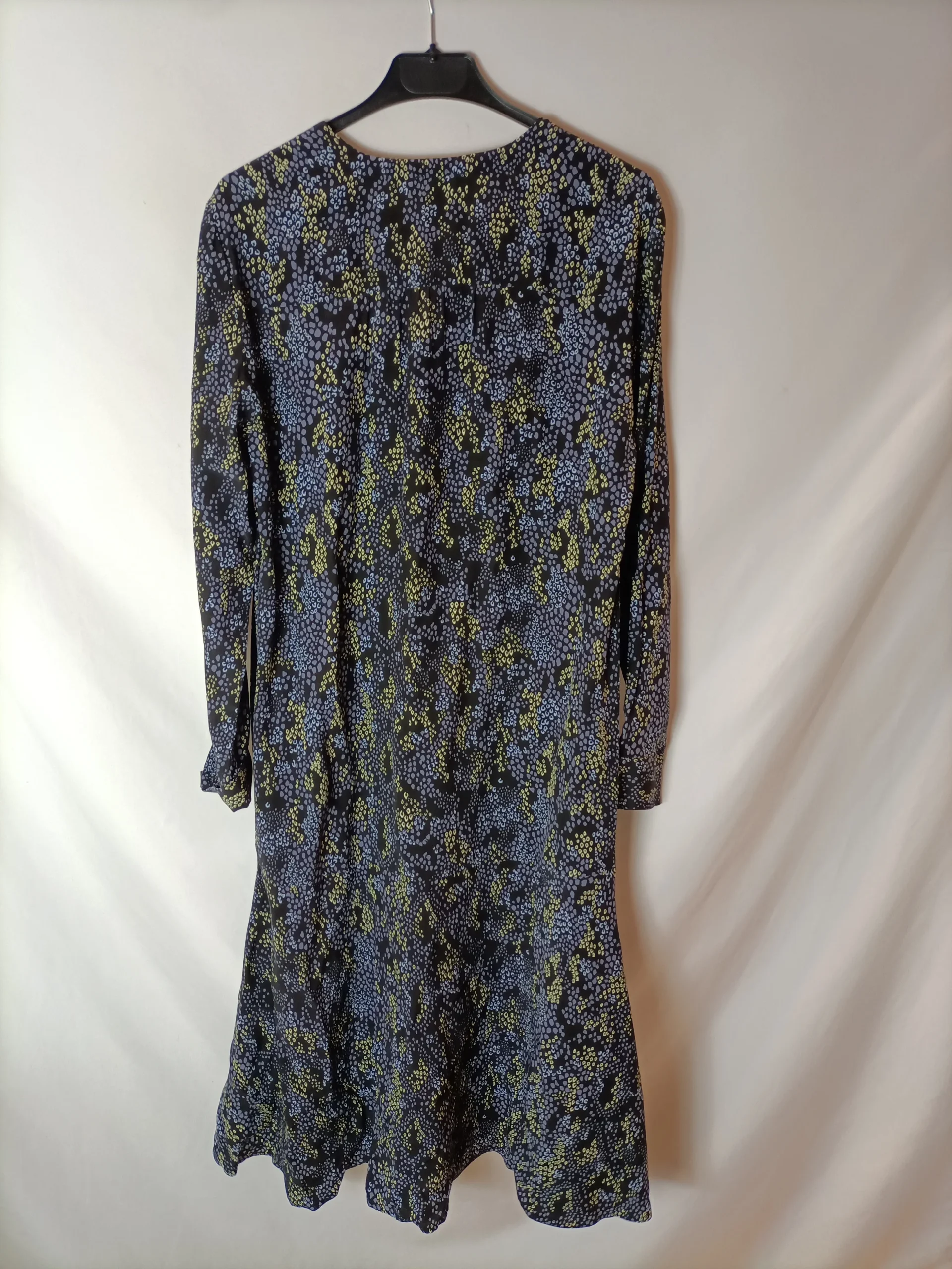 Vestido negro fluido midi estampado estilo print. De sisa a sisa 48 cm