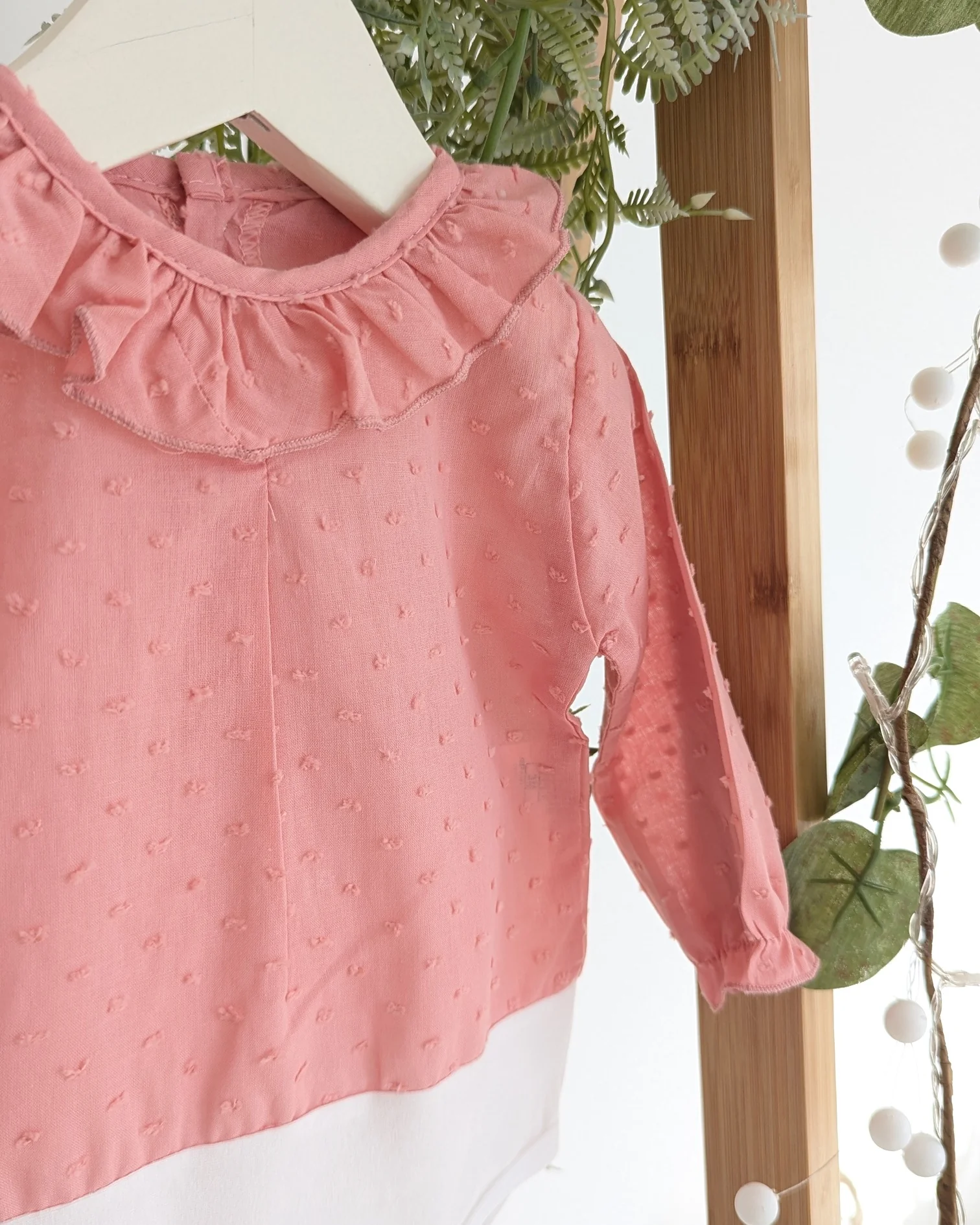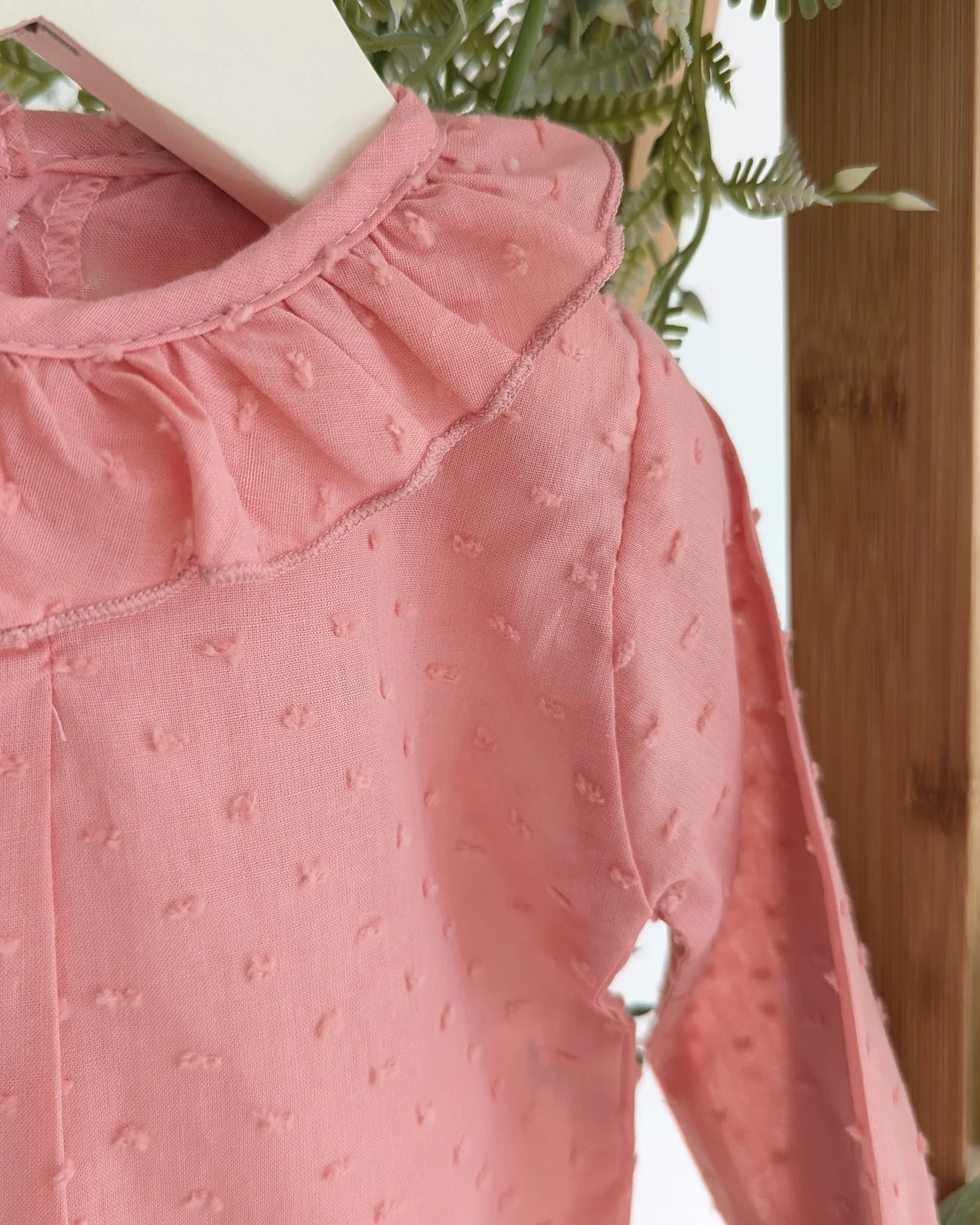 Compra online body para bebé camisa de plumeti de Calamaro Baby con cuello de volante en www.tiendagrumetes.es