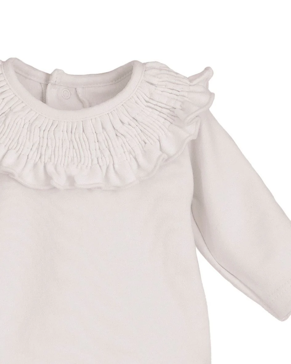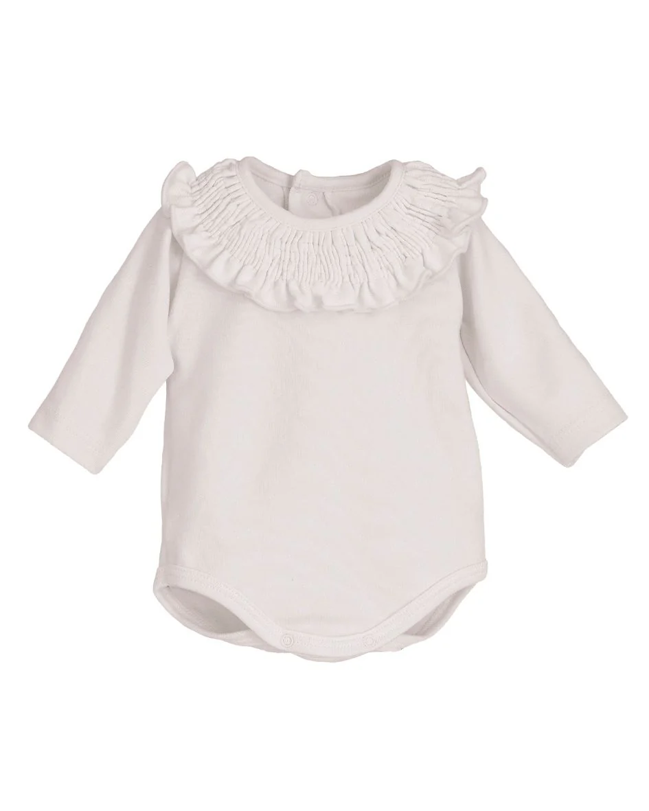 Comprar online el body para bebé de Calamaro Baby, con cuello de volante y diseño exclusivo, en www.tiendagrumetes.es, la mejor tienda online de España para ropa de bebé elegante y de calidad.
