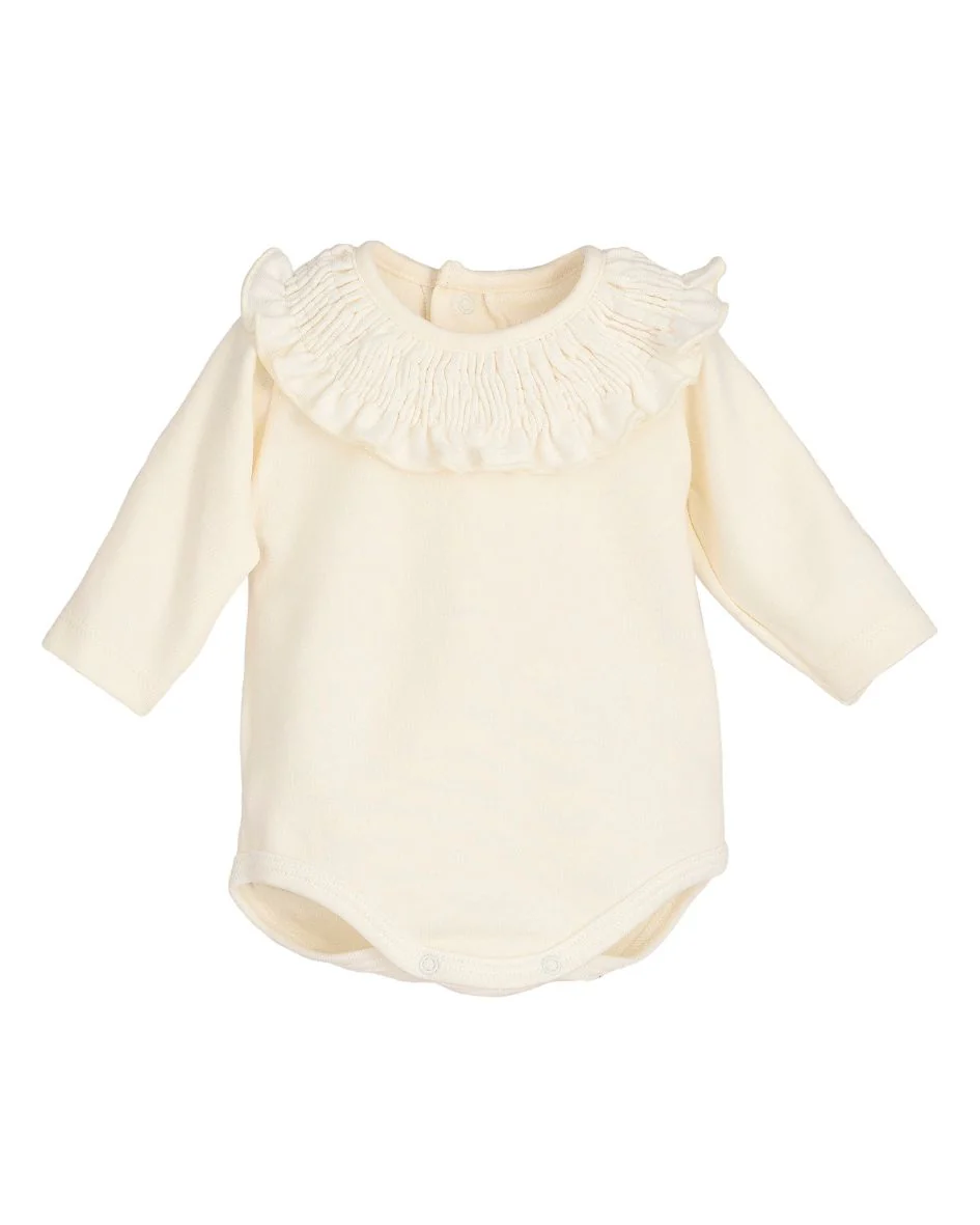 Comprar online el body para bebé de Calamaro Baby, con cuello de volante y diseño exclusivo, en www.tiendagrumetes.es, la mejor tienda online de España para ropa de bebé elegante y de calidad.