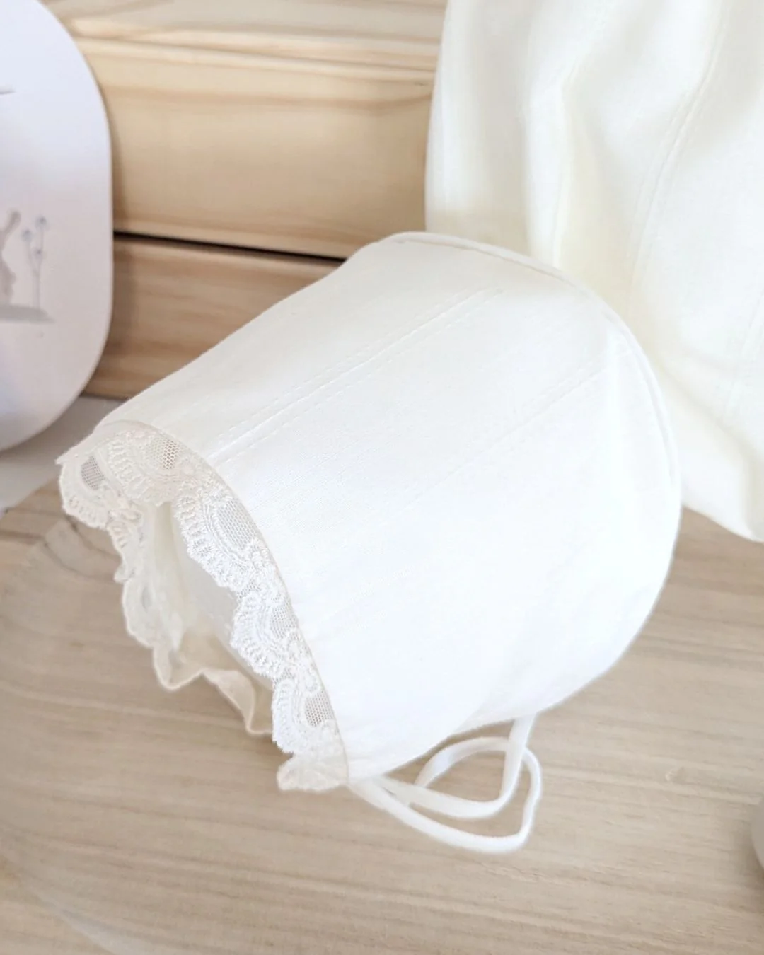 - Capota a juego con la misma cinta y puntilla