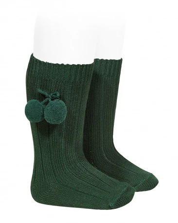 Calcetín Alto Canalé con Borlas Verde Botella 780 – Cóndor