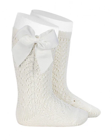 Calcetín Alto Perlé Calado Lazo Grosgrén Nata 202 – Cóndor