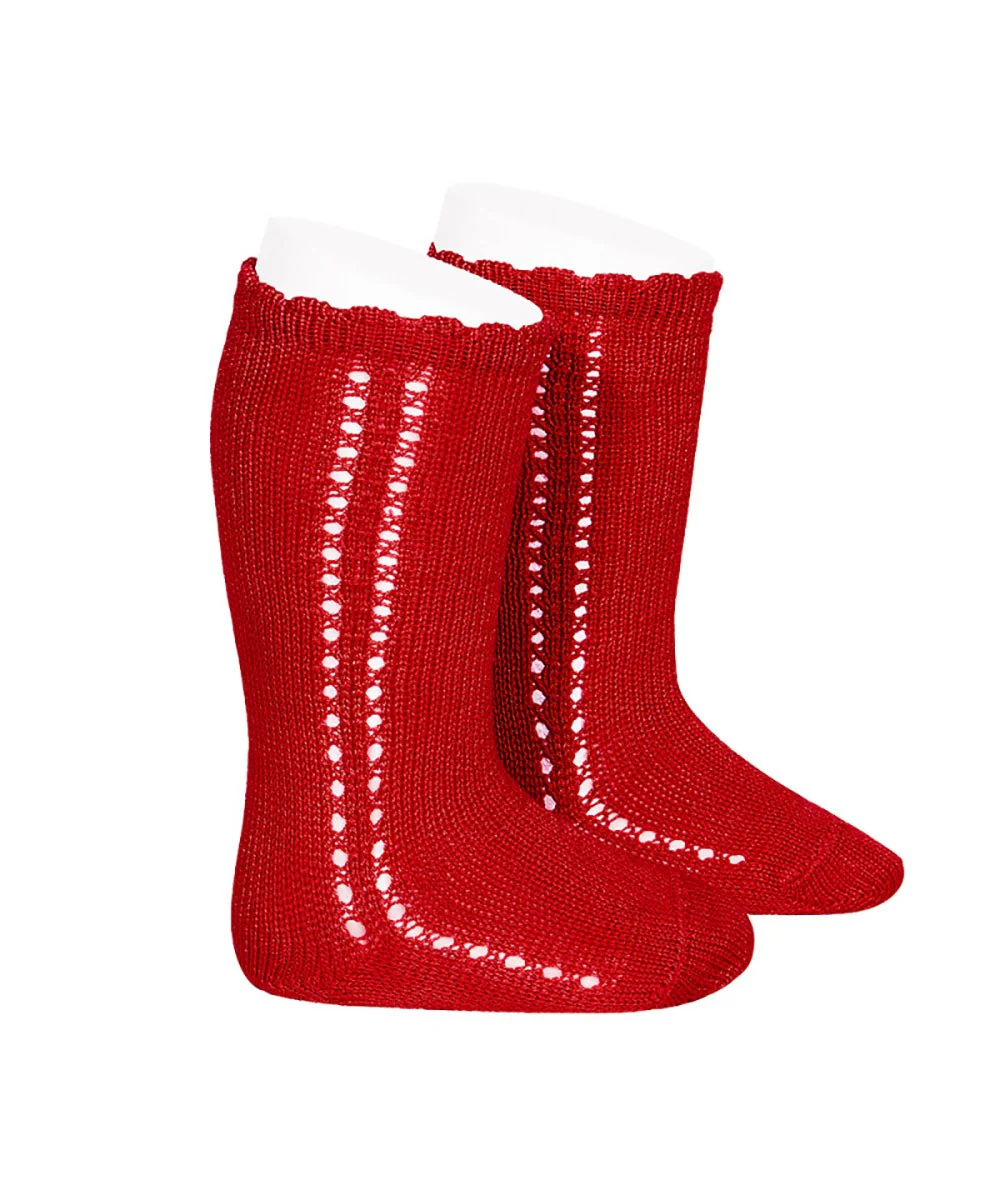 Calcetin Alto Perlé Calado Rojo – Cóndor