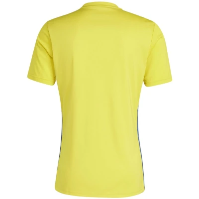 La Camiseta Adidas Manga Corta Tabela 23 Amarilla/Azul, fabricado en poliester reciclado, diseñado con un estilo clasico teniendo en el lateral las 3 rayas de adidas clasicas.