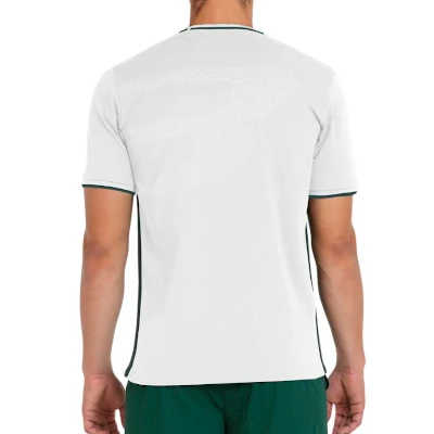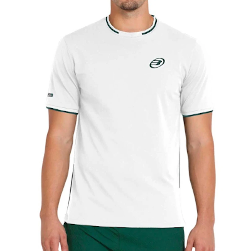 La Camiseta Bullpadel Louren Blanca, diseñada en tejido ultraligero con una nueva tecnologia microfilamento para reducir la humedad y ayudar a la transpiración.