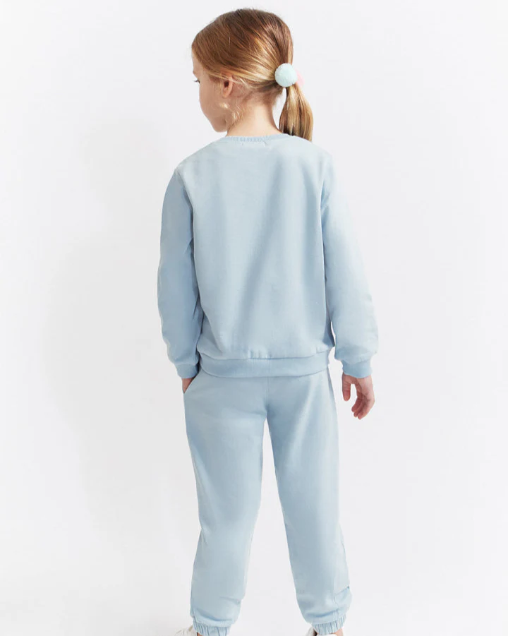- Pantalón a juego en azul con cintura ajustable y bajos con puño