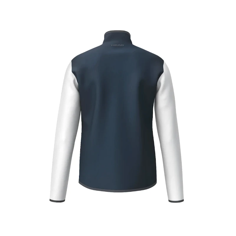 La Chaqueta Head Club 25 Azul Marino/Blanco 2025, fabricada para su uso tanto dentro como fuera de la pista, gracias a su combinación entre estilo moderno y deportivo con una gran comodidad atletica.
