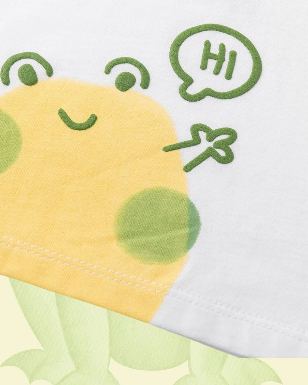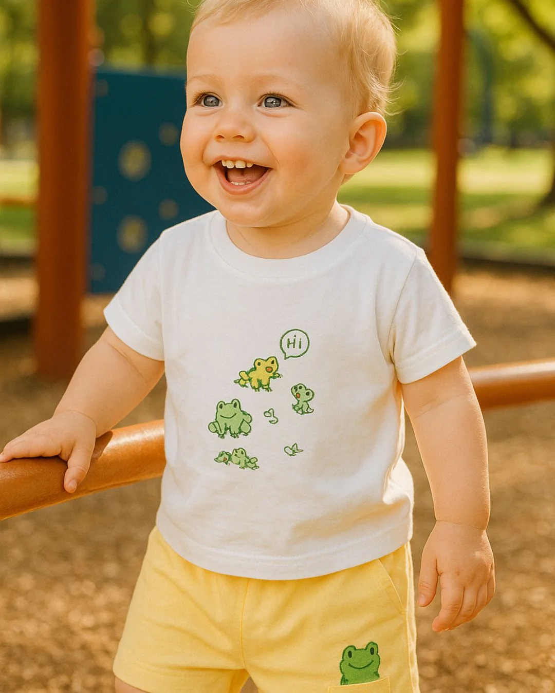 👋🐸 Conjunto ranitas “Hi!” para bebé niño – ¡Suave, alegre y veraniego! ☀️