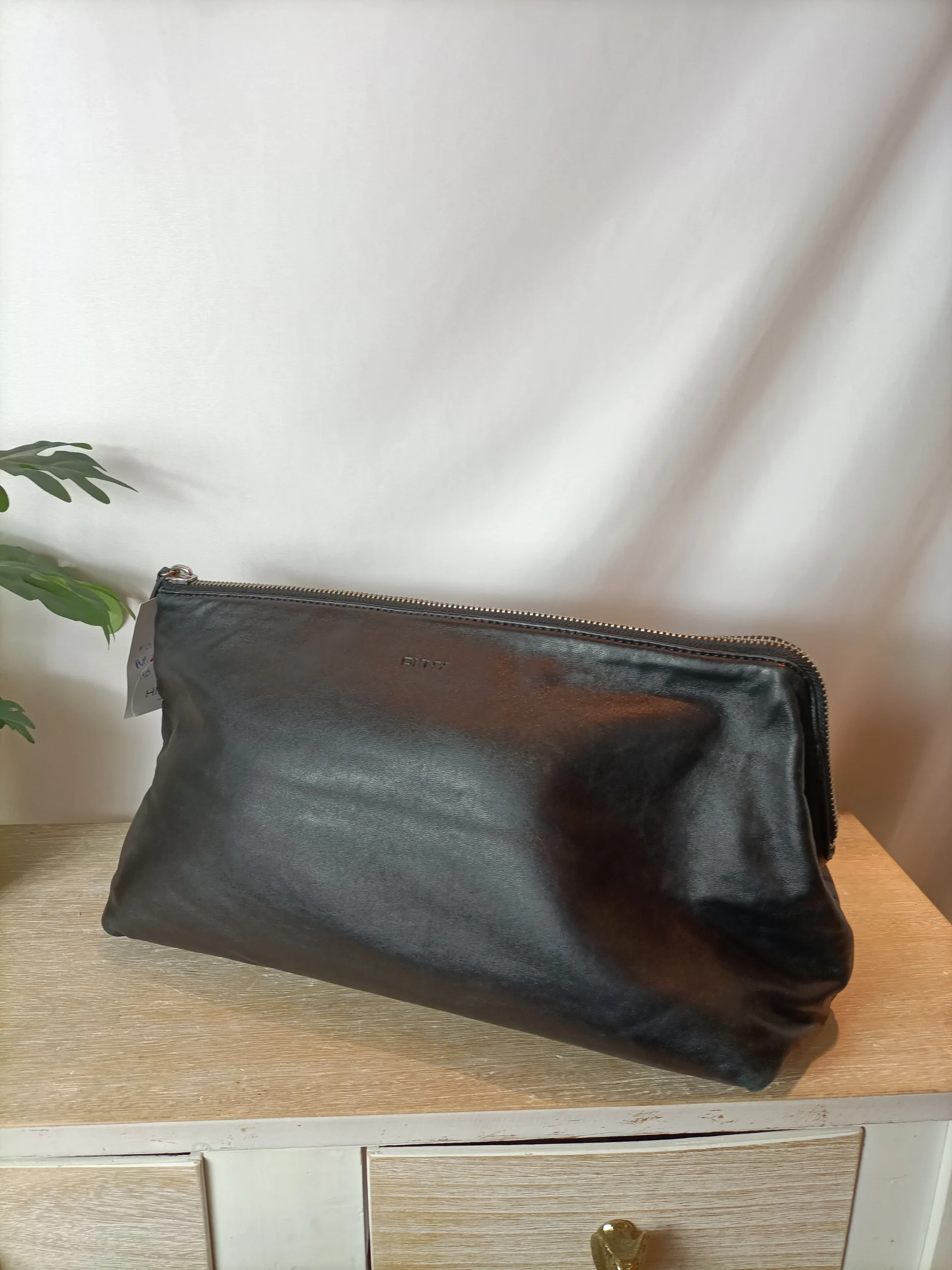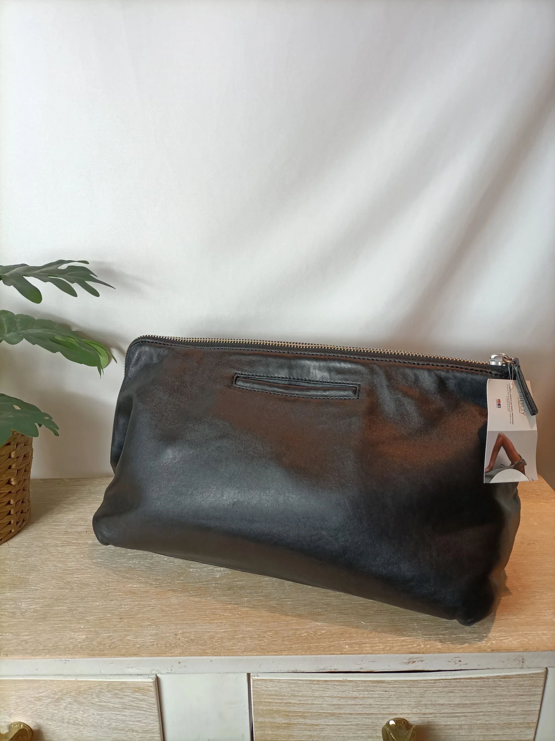 Bolso mano piel . Cierre con cremallera