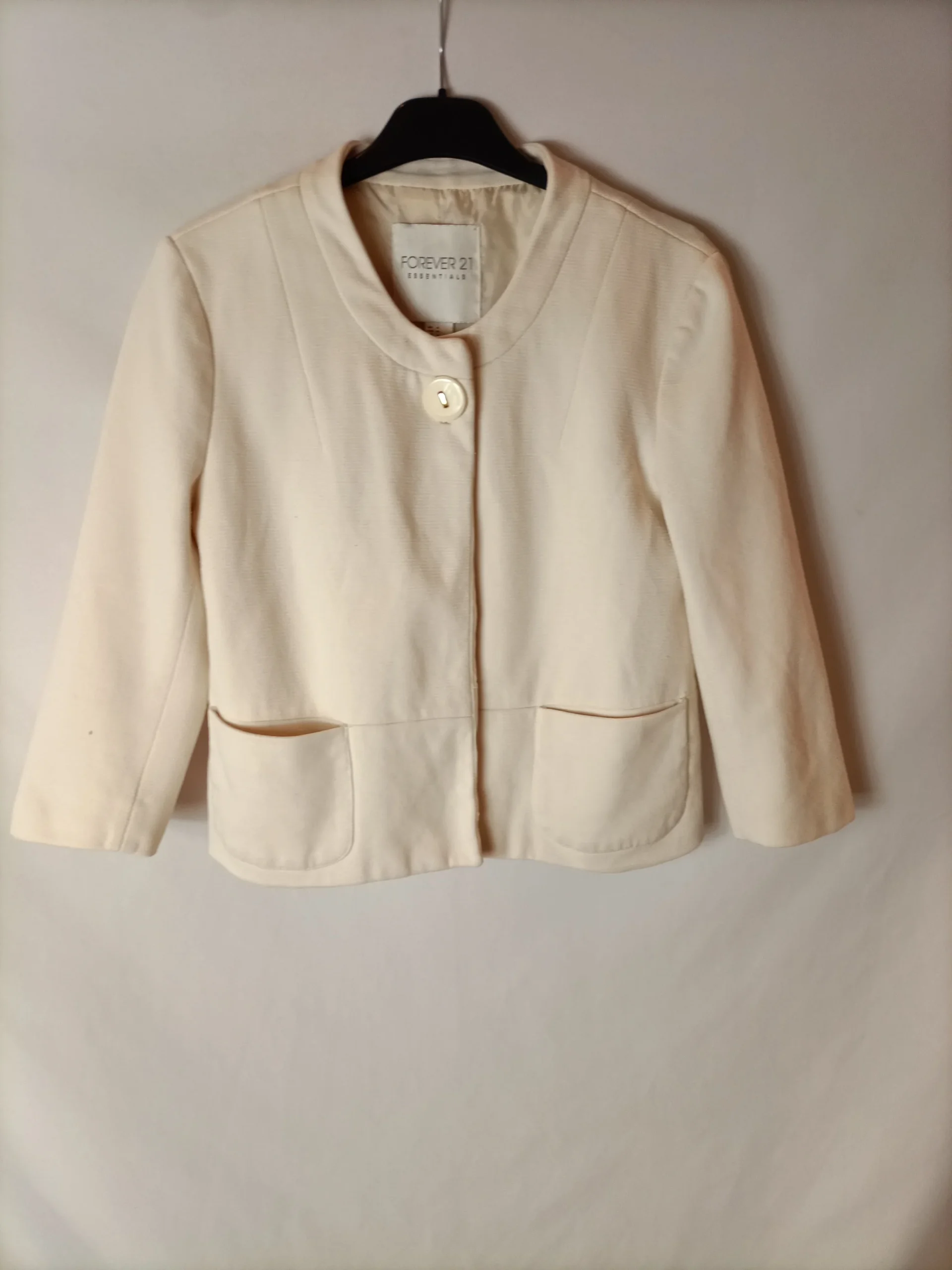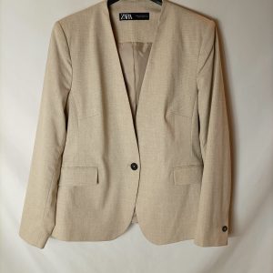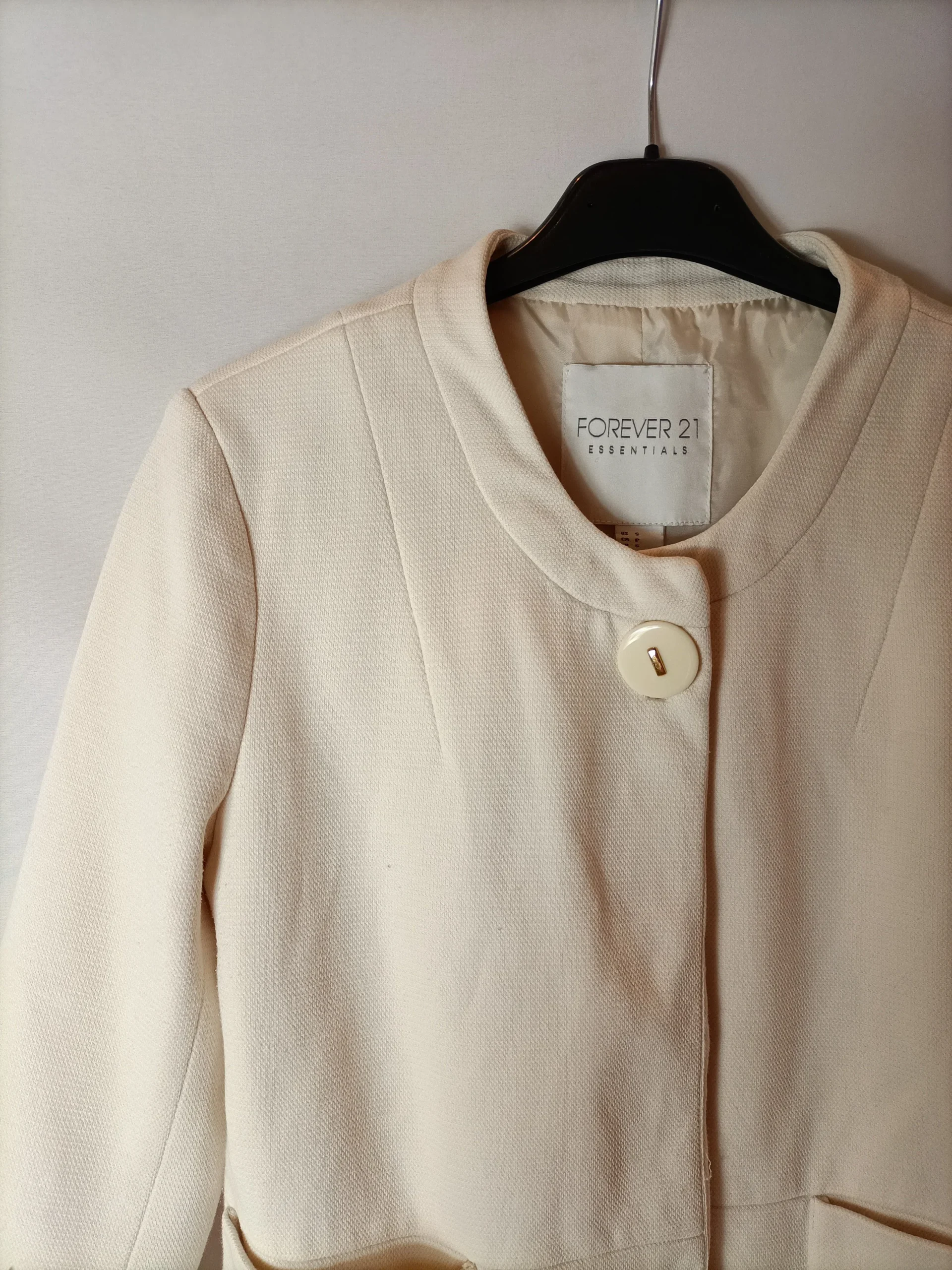 Chaqueta corta beige claro botones con clip.
