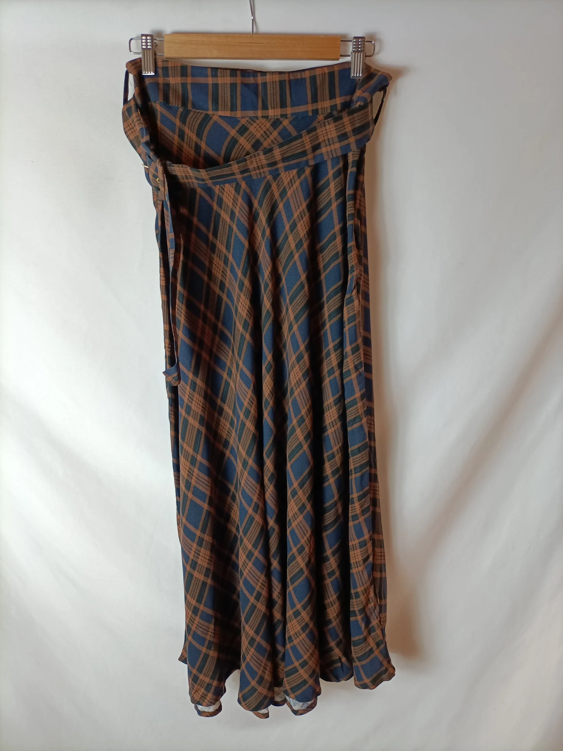 NUEVO CON ETIQUETA. Falda larga cuadros con cinturón y cremallera lateral. Cintura cm largo cm