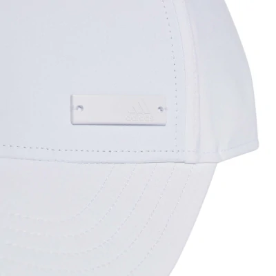 La Gorra Adidas BBall LT MET Blanco, fabricada con un diseño minimalista con una pequeña insignea de metal de la marca.