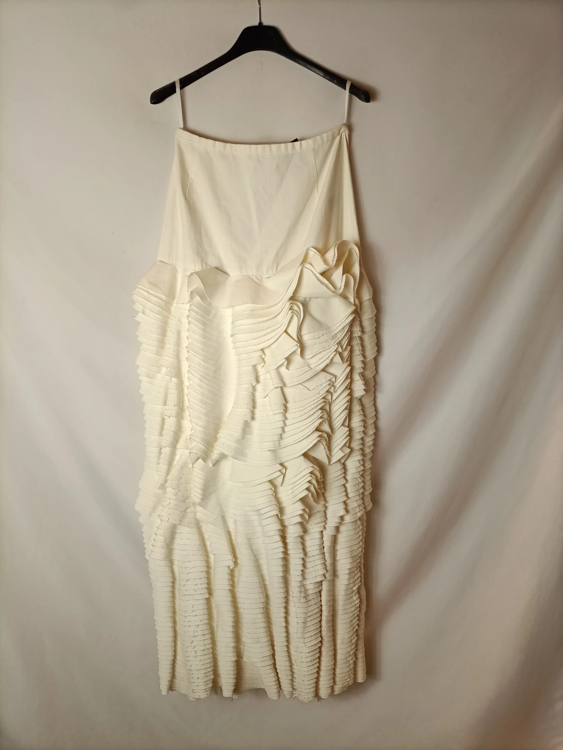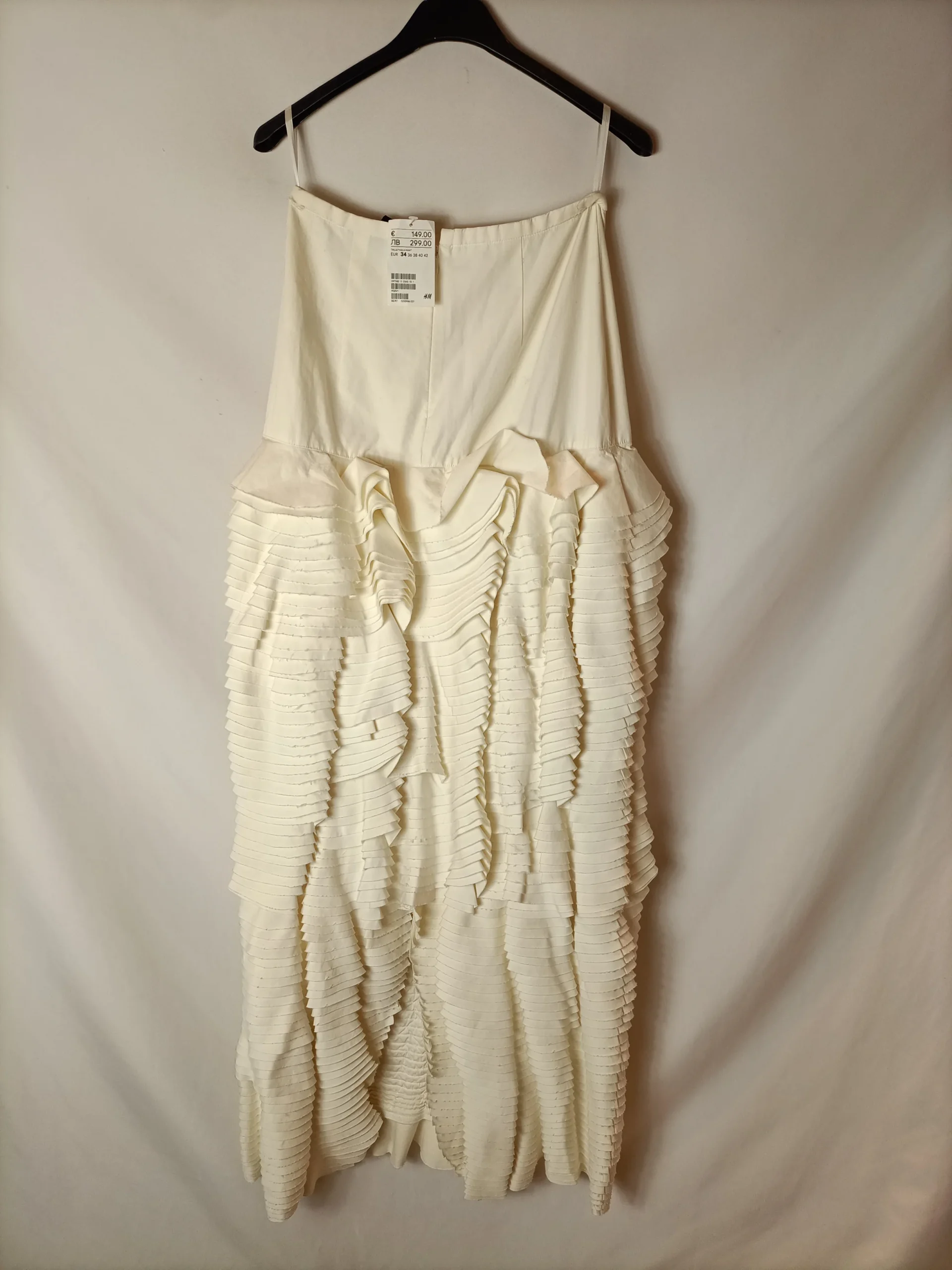 NUEVO CON ETIQUETA. Falda larga volantes blanco roto. Tejido semi elástico