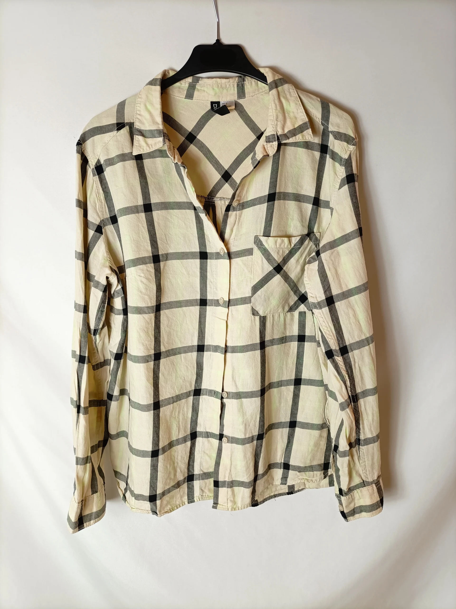 H&M. Camisa beige cuadros T.42