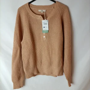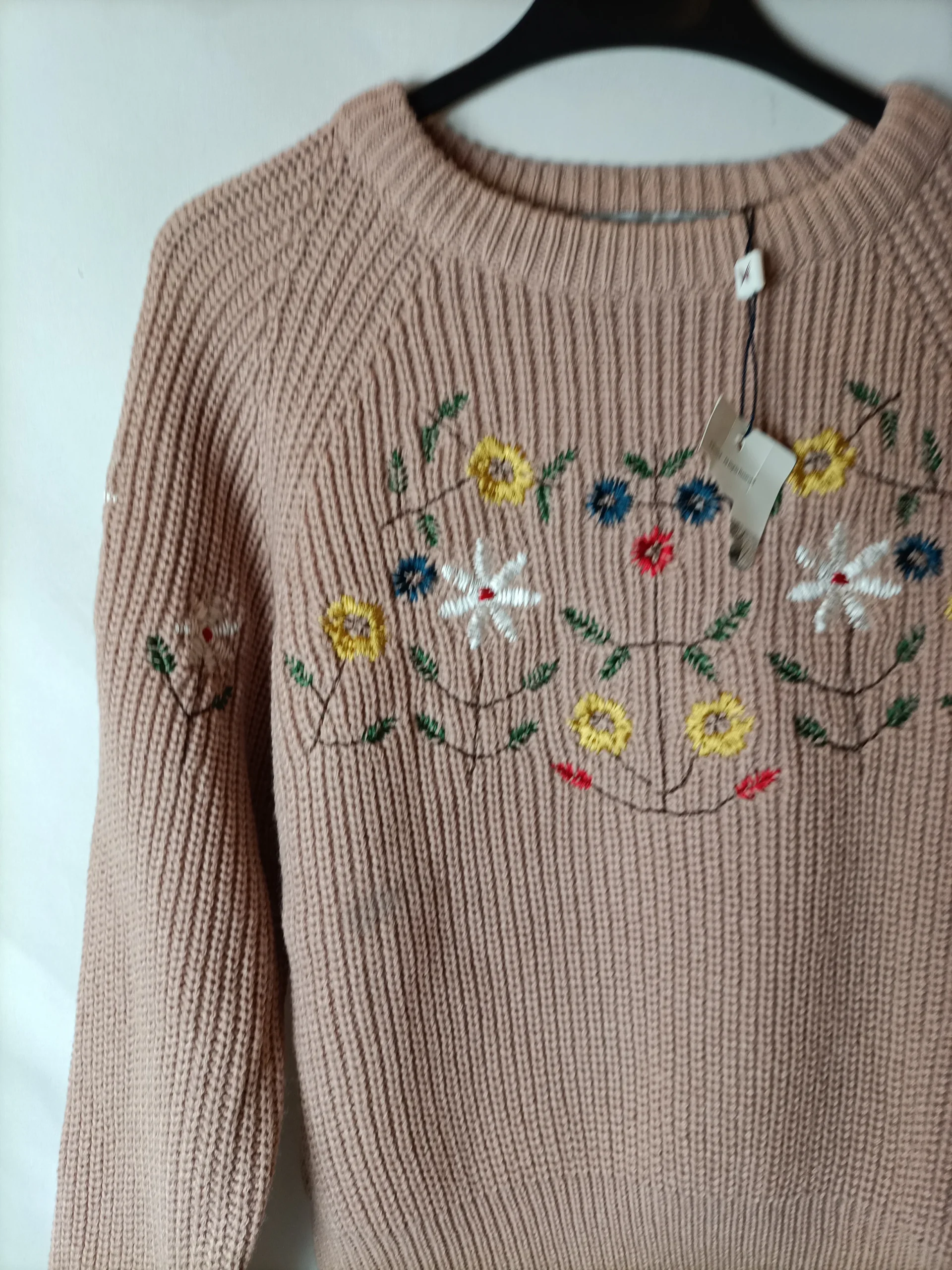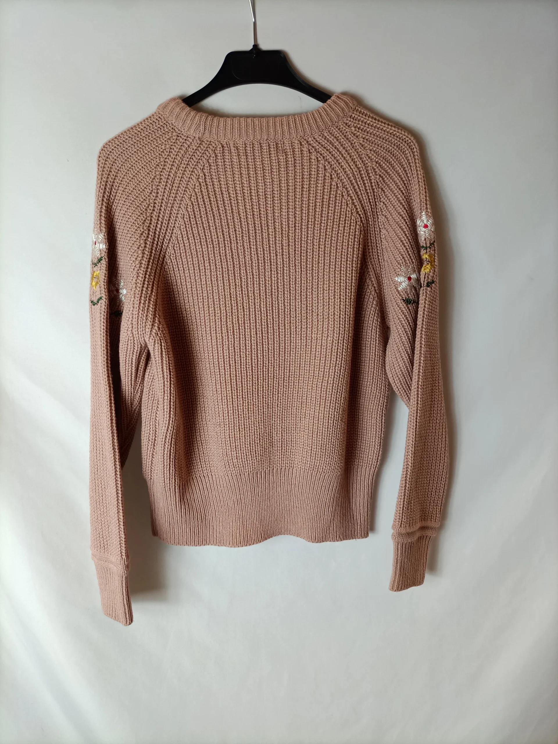 NUEVO CON ETIQUETA. Jersey gordito rosa con flores bordadas. Tara; manchita