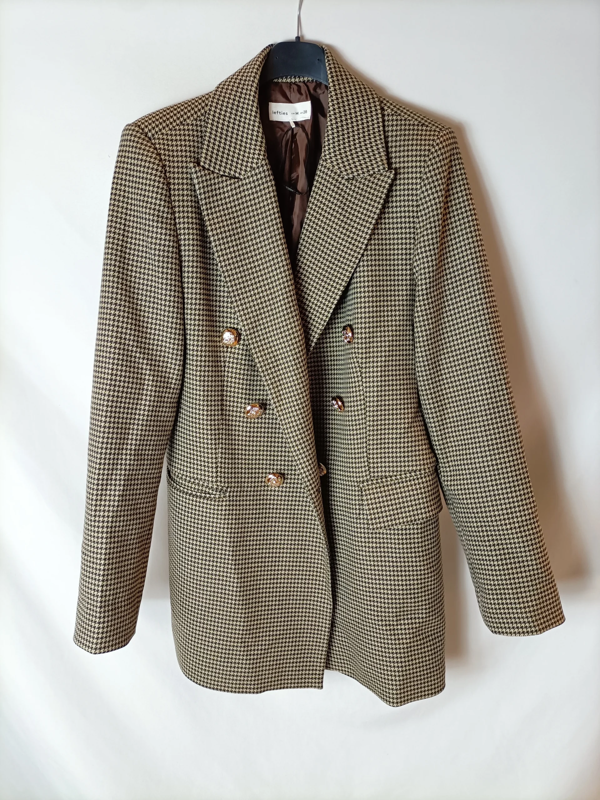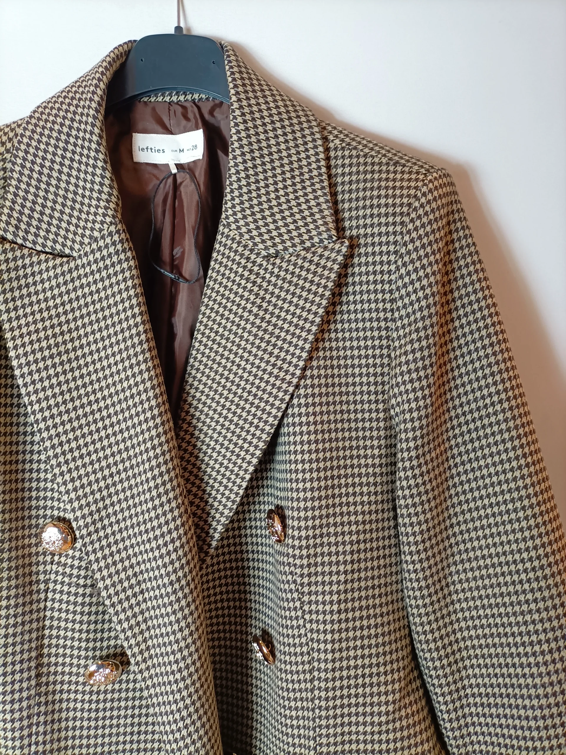 Abrigo estilo blazer de pata de gallo en tonos tierra. botones dorados.