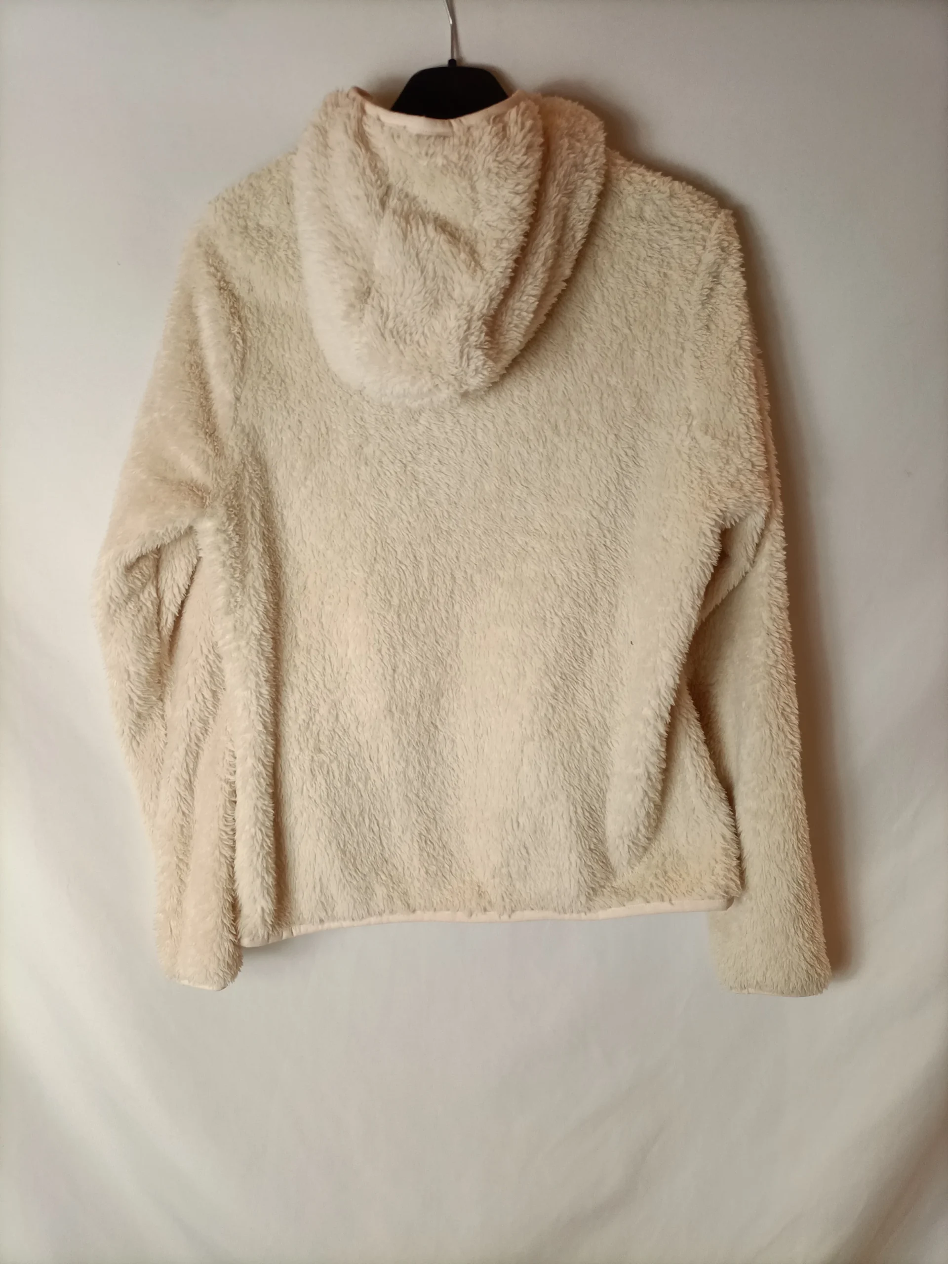 Chaqueta pelo beige con capucha y cierre con cremallera