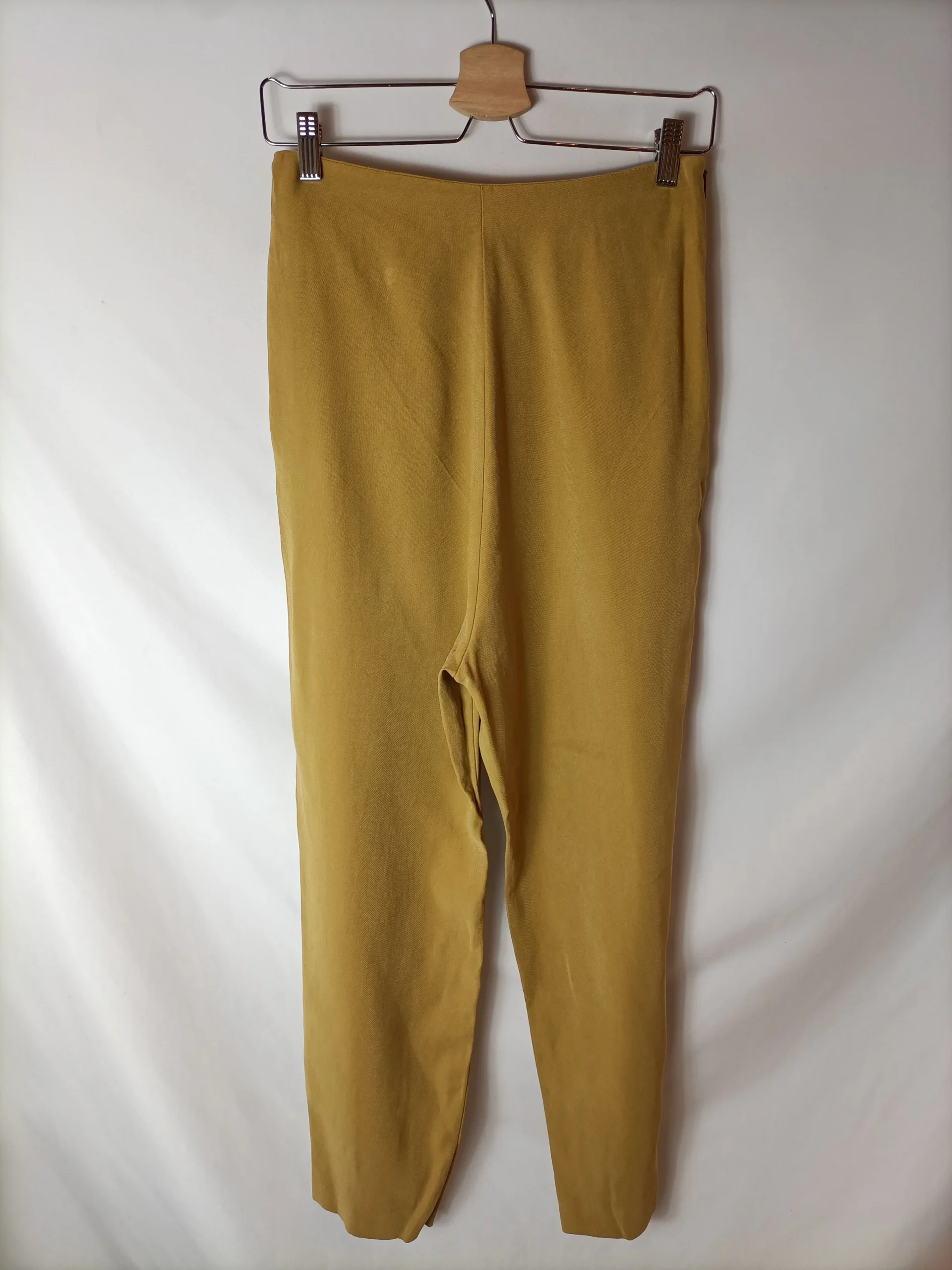 Pantalón fluido marrón con la cintura cruzada. no elástico. cintura cm
