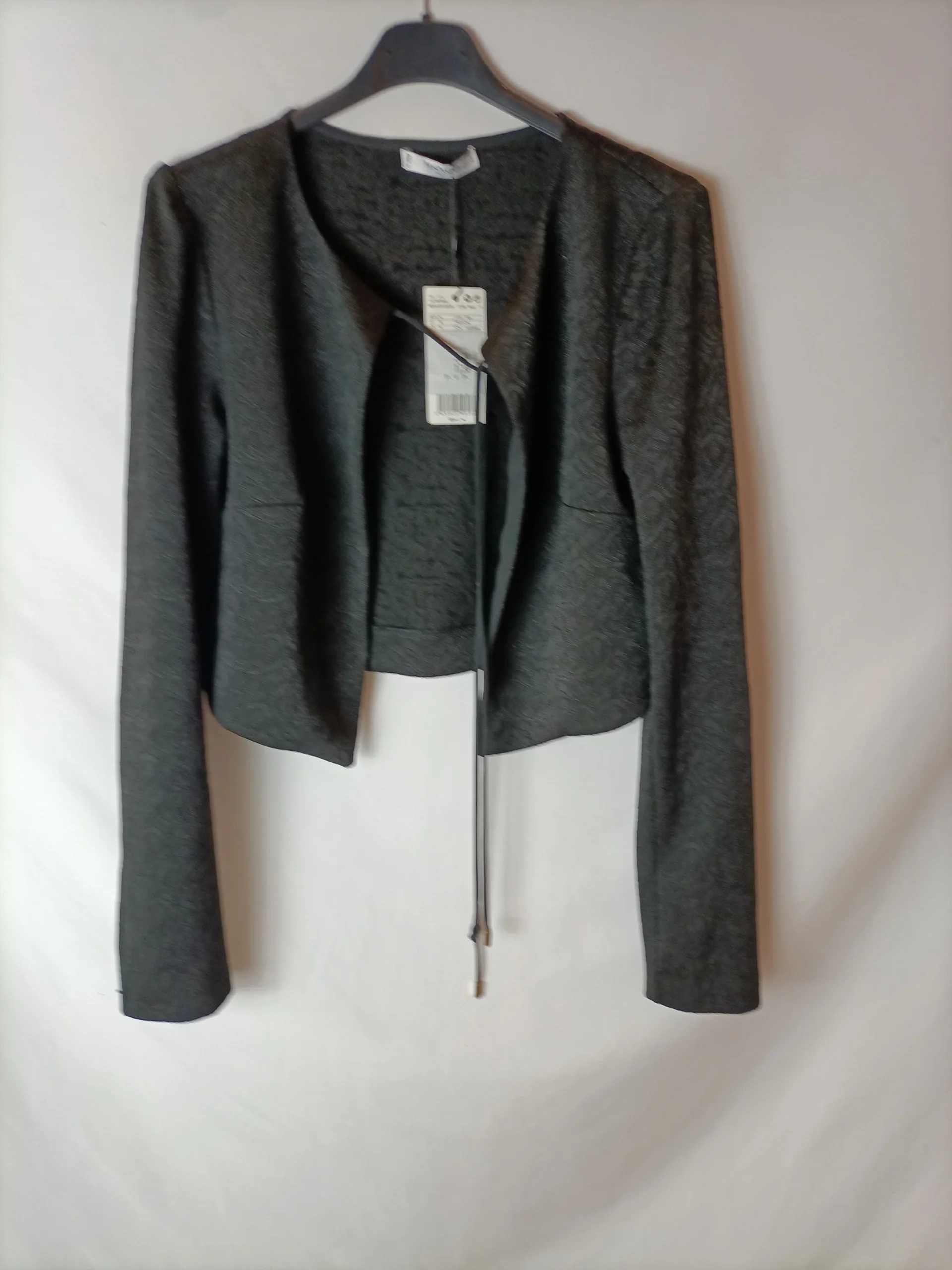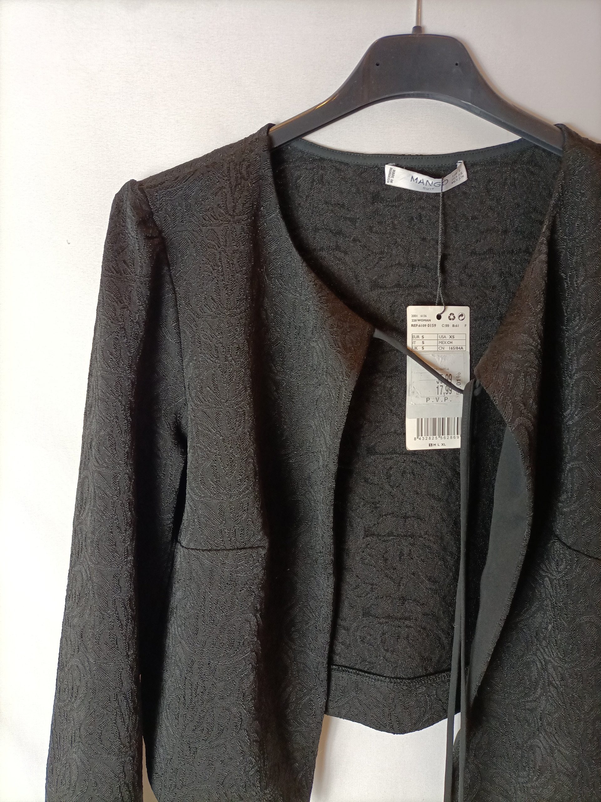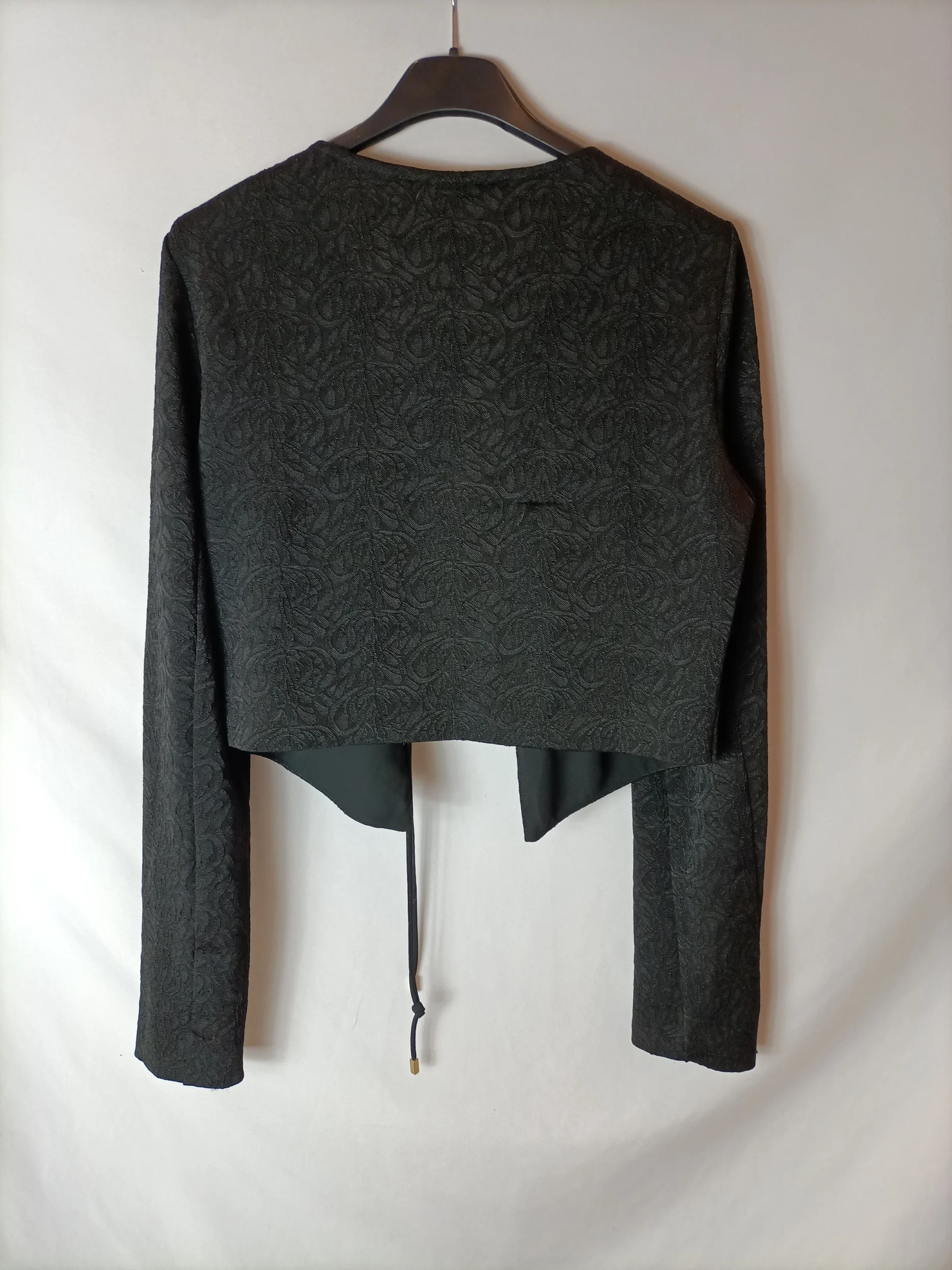 NUEVO CON ETIQUETA. Torerita negra con textura. Se abrocha con lazada en la parte de arriba.