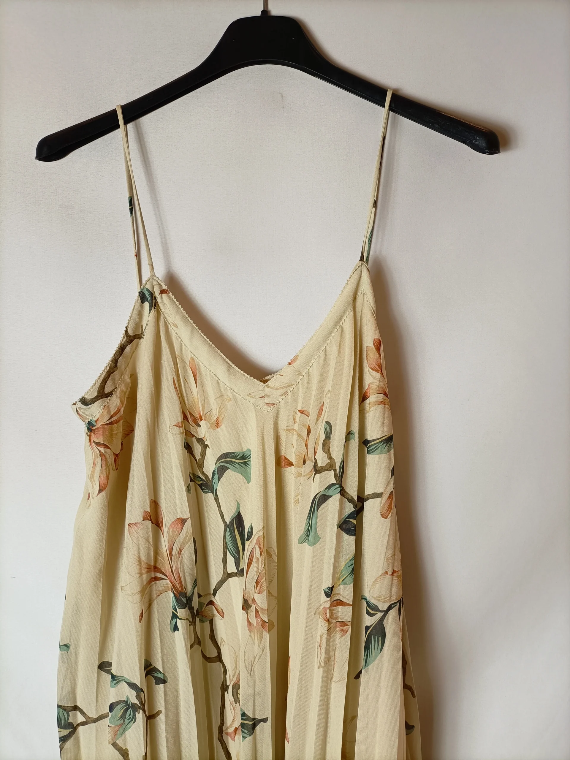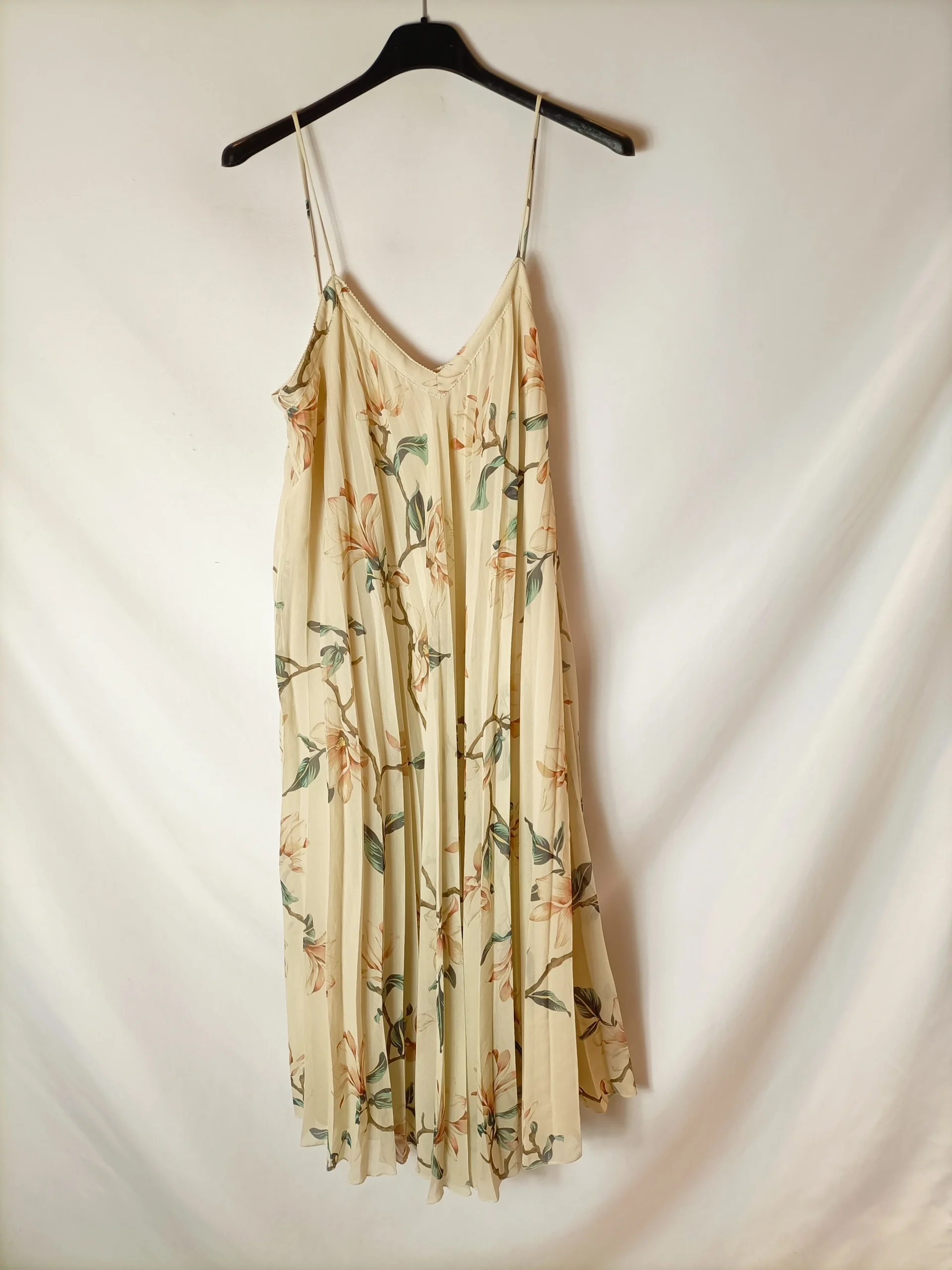 Vestido plisado beige estampado