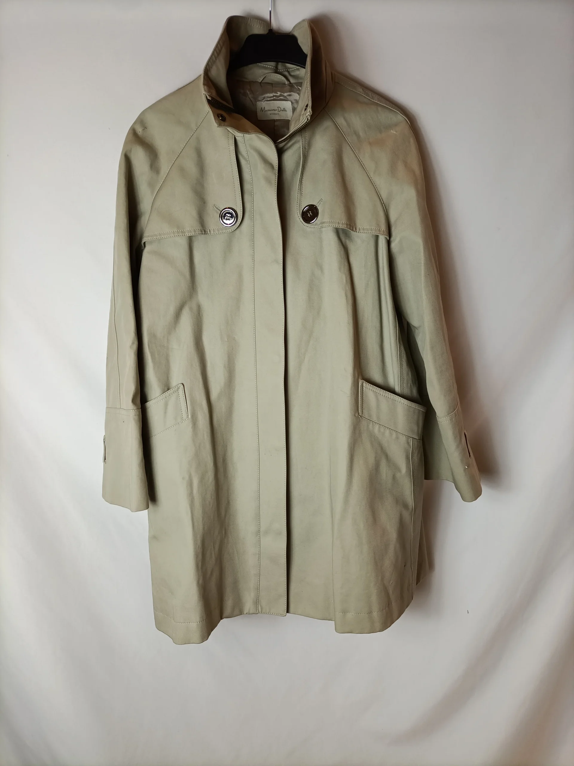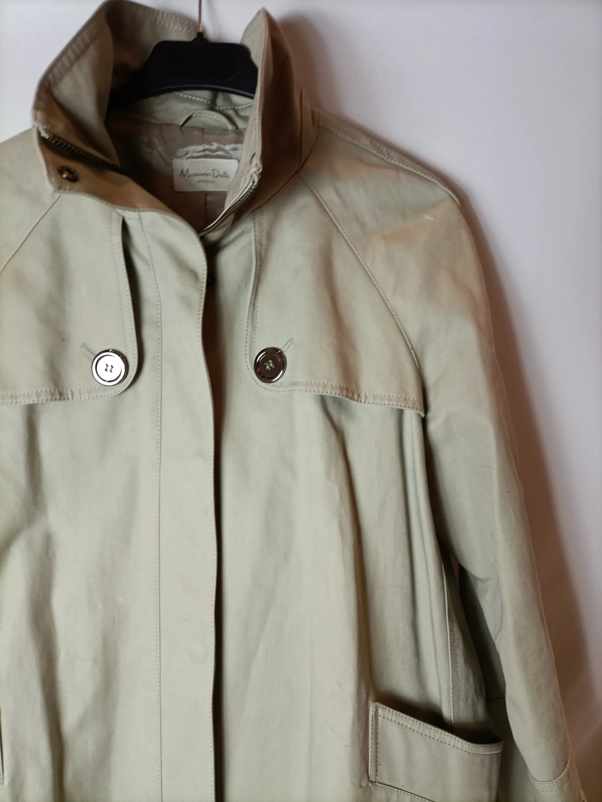 Gabardina beige acampanada se cierra con cremallera. tara:falta el cinturón y tiene 3 pezpuntes