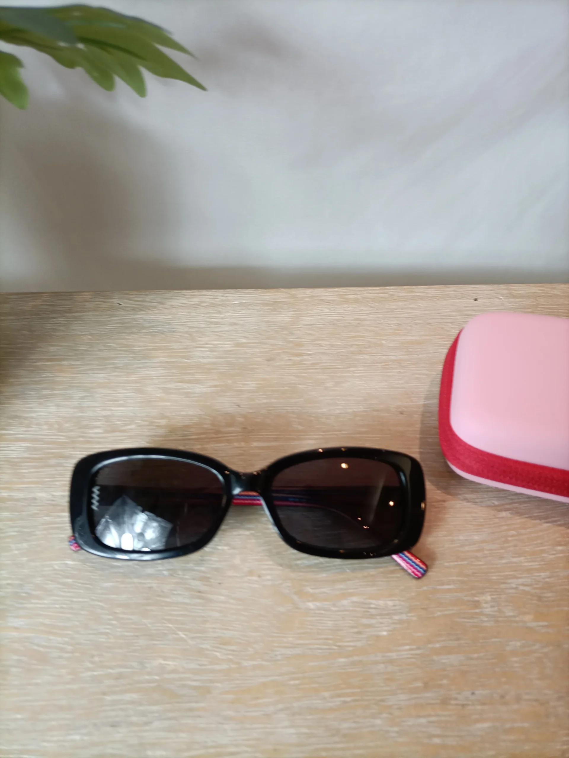 Gafas de sol negras rectangulares.