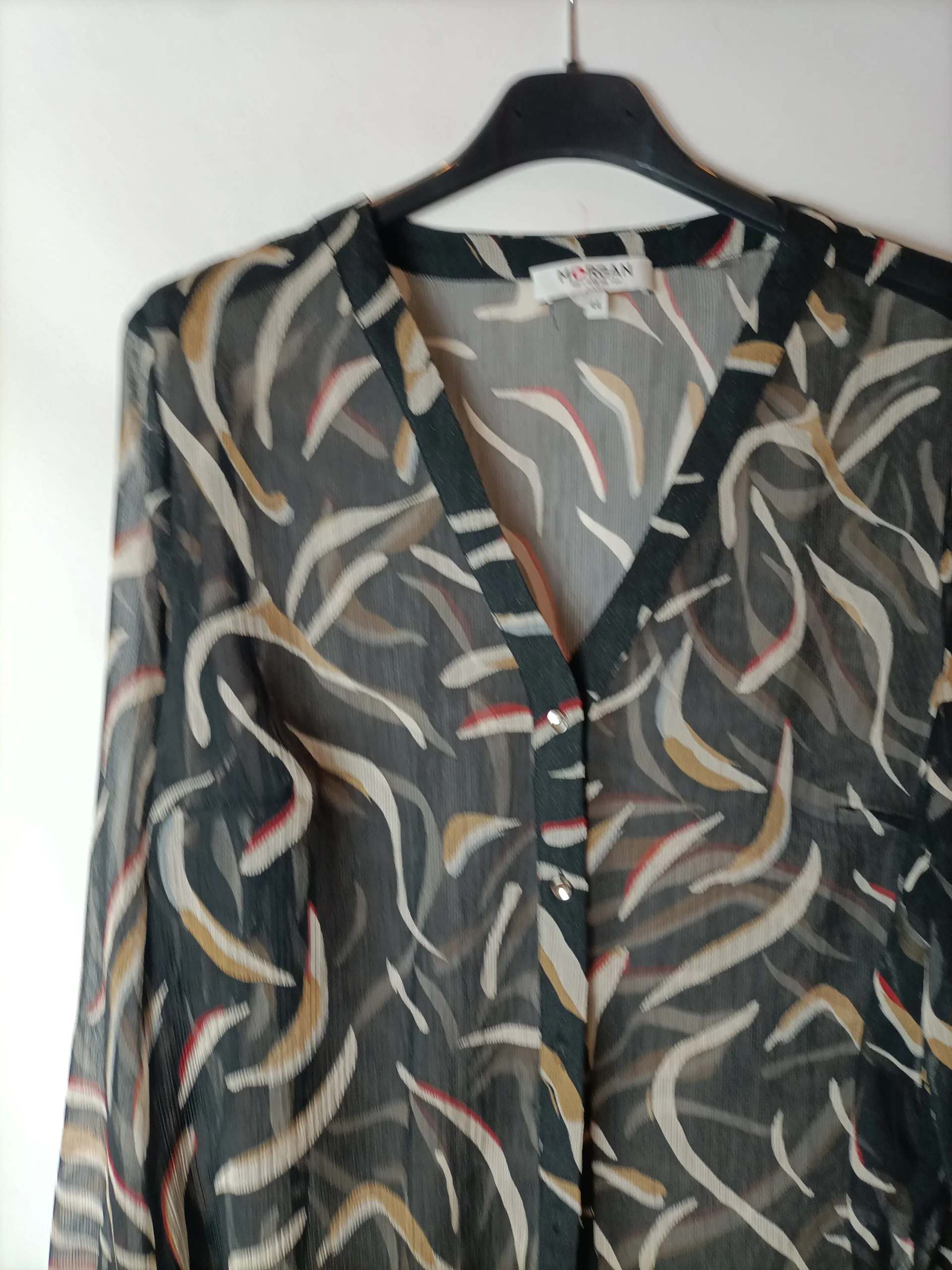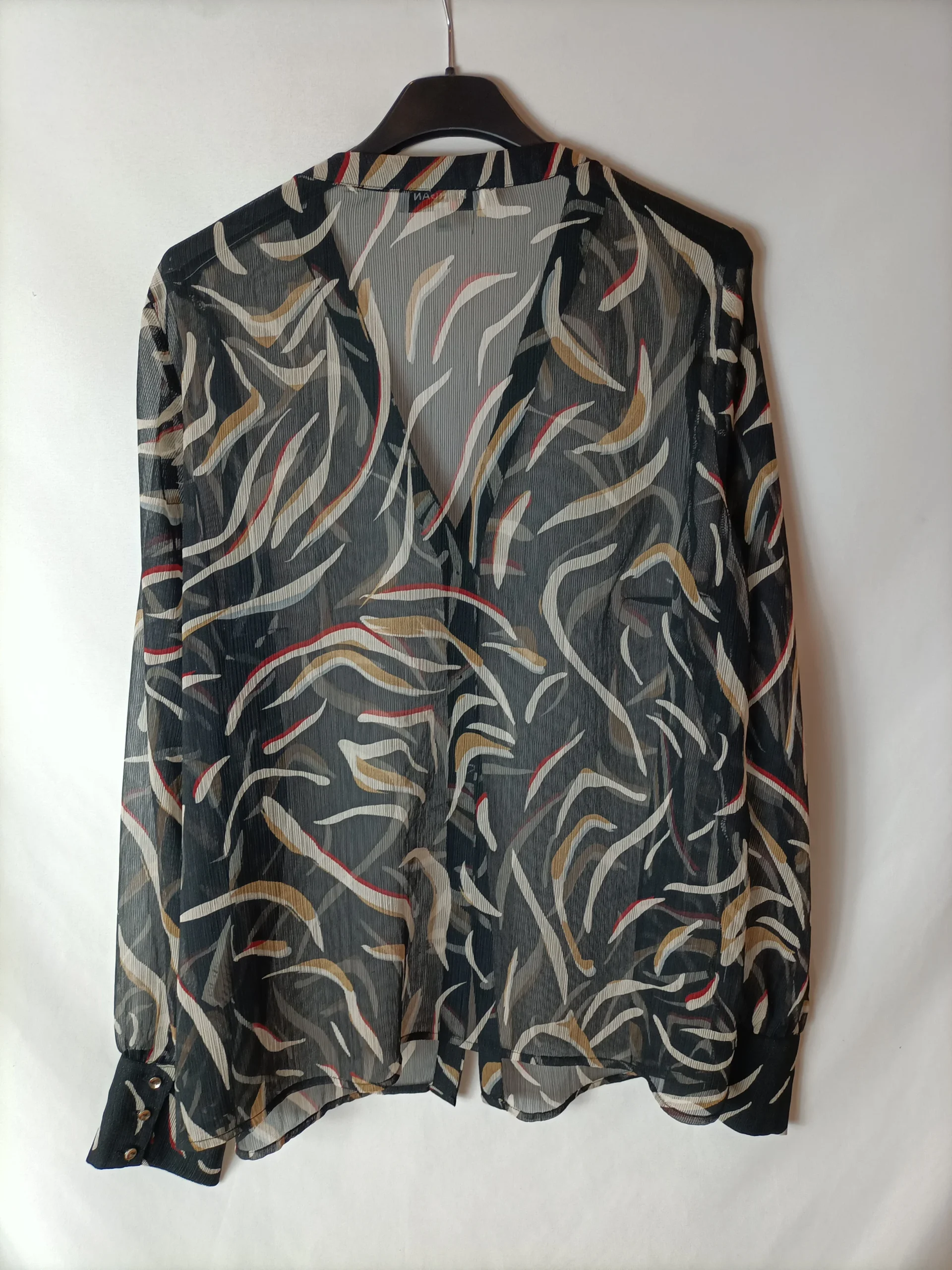 Blusa transparente negra estampada.
