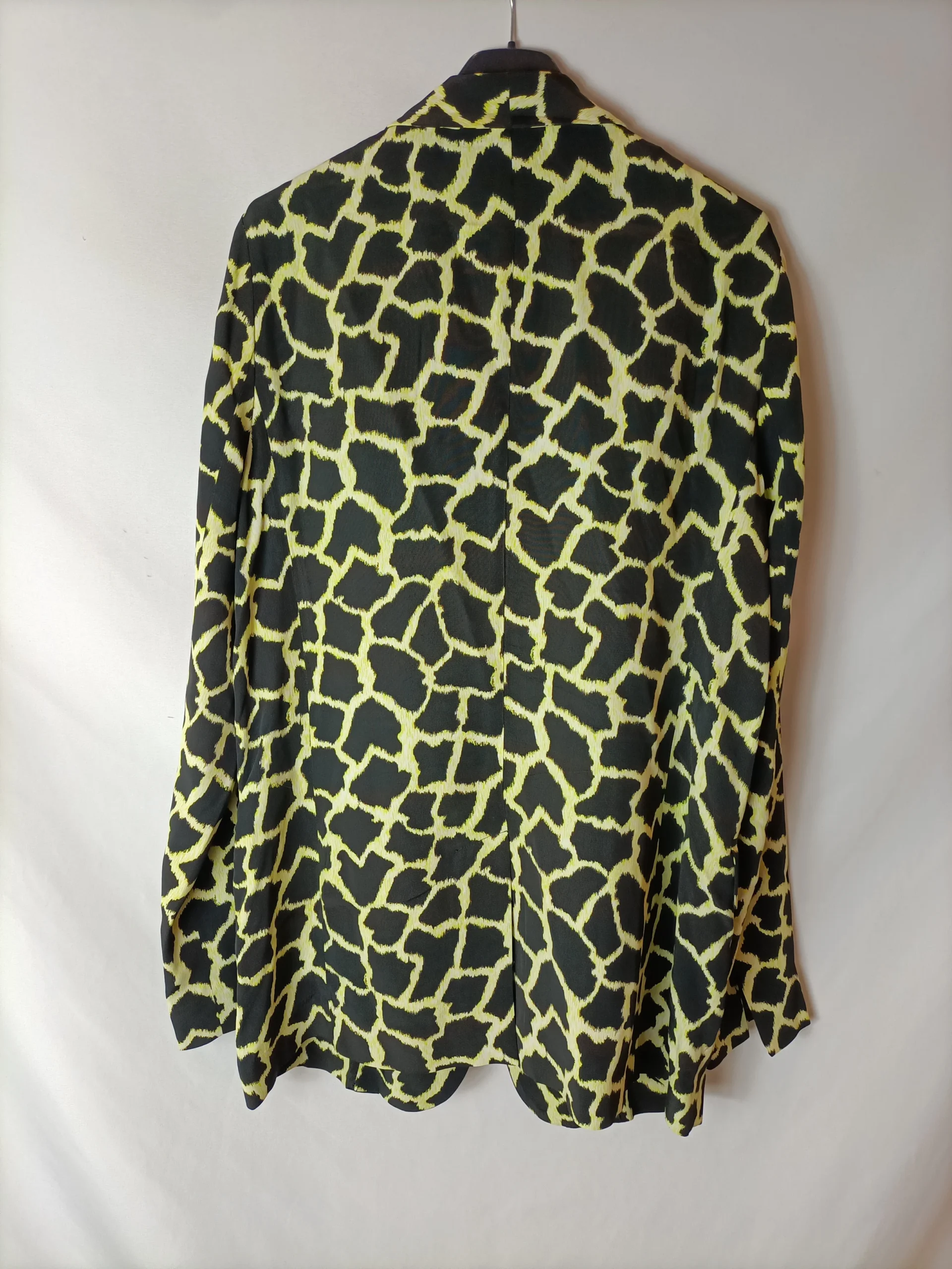 Blazer fluida negra estampada. Talla como una 40. Cierre con un corchete