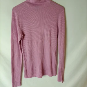 Jersey punto abierto malva con detalles en tull en cuello y parte inferior.