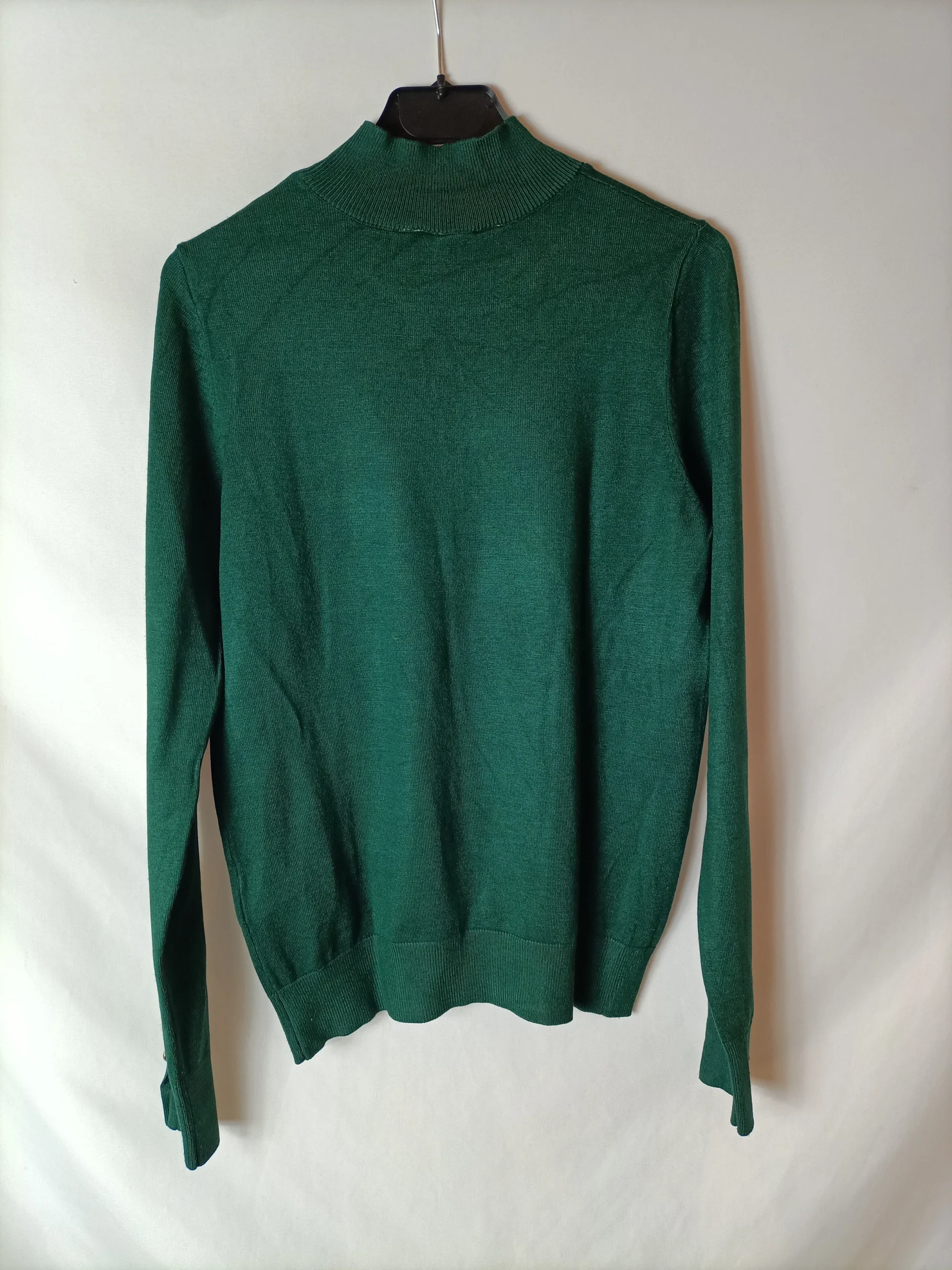 Jersey cuello perkins verde botella. Abotonado en un lado hasta el hombro.