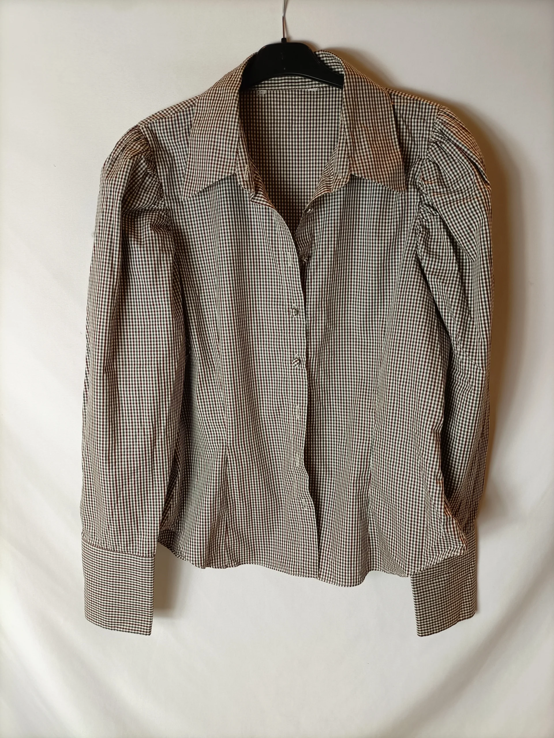Blusa cuadros mini hombreras. Detalle puño y botones forrados. Tejido no elástico