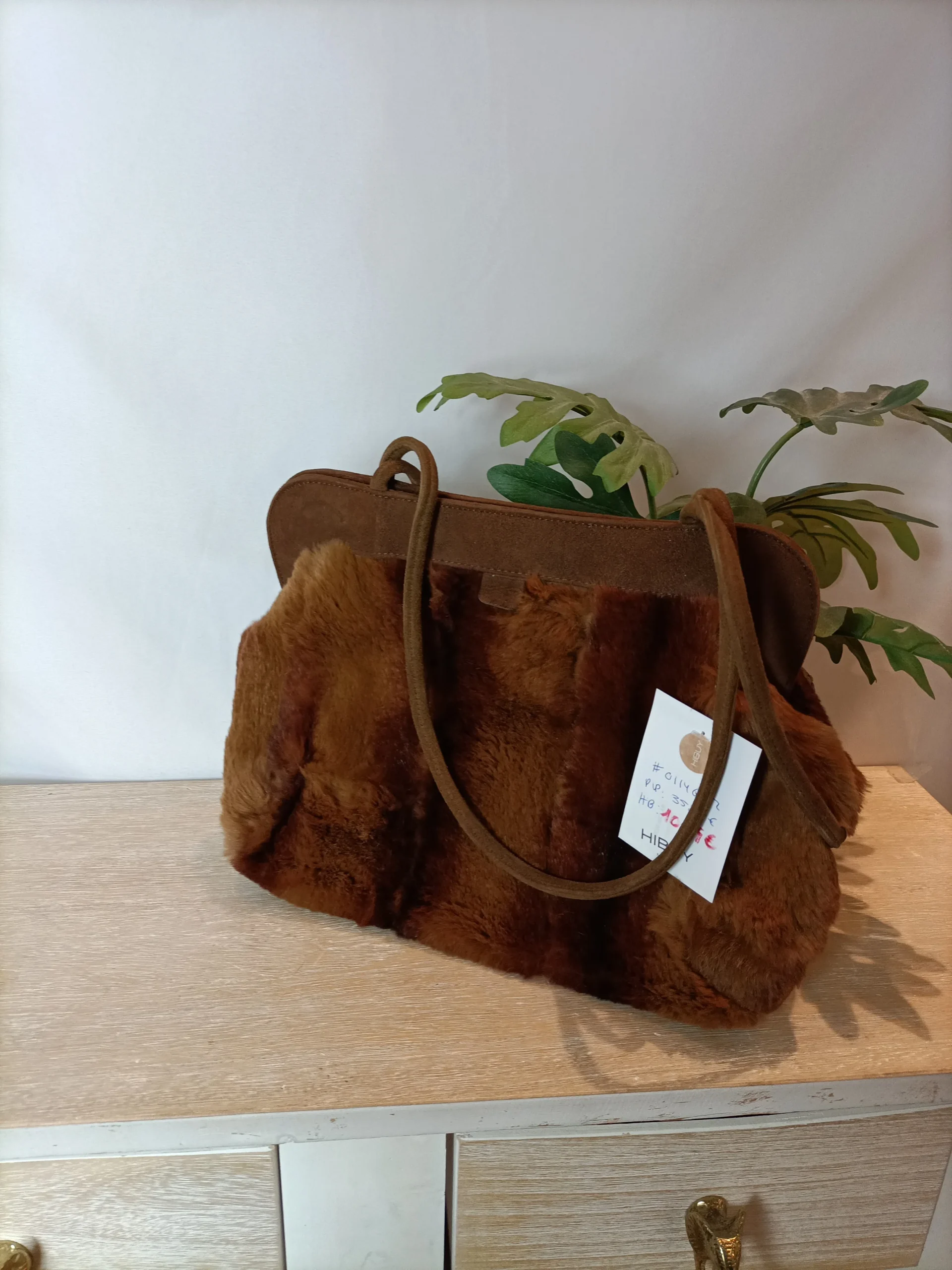 Bolso pelo marrón asa corta.