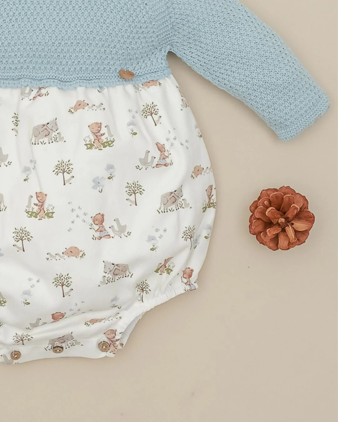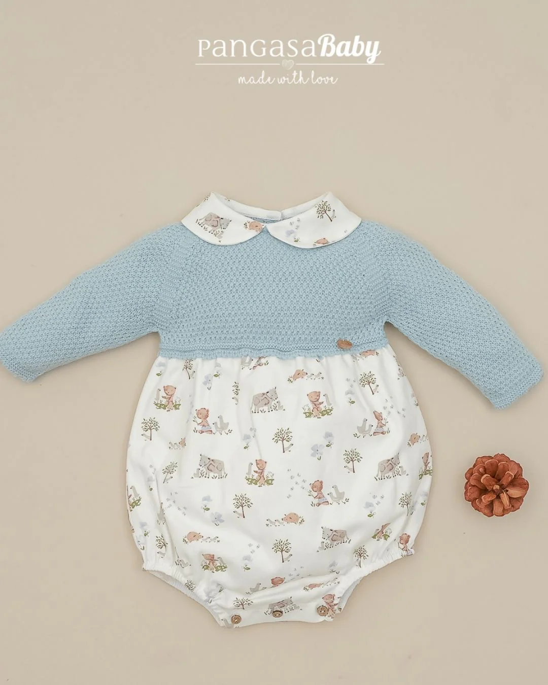 pelele bebé celeste, pelele estampado ositos, ropa Pangasa Baby, ropa bebé invierno, conjunto bebé celeste, pelele cuello bebé, pelele cómodo recién nacido, pelele con dibujo de animales, ropa infantil española.