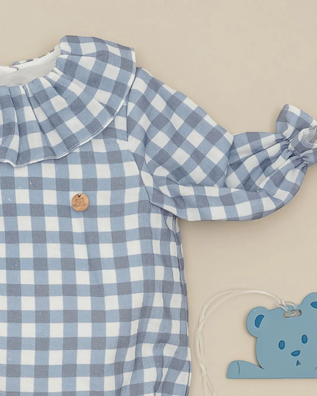 Pelele Tela Cuadros Bruma 💙 Bleu Brume – Pangasa Baby