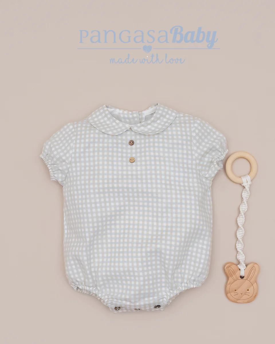 🍼 Pelele Tela Cuadros Celeste Empolvado – Pangasa Baby