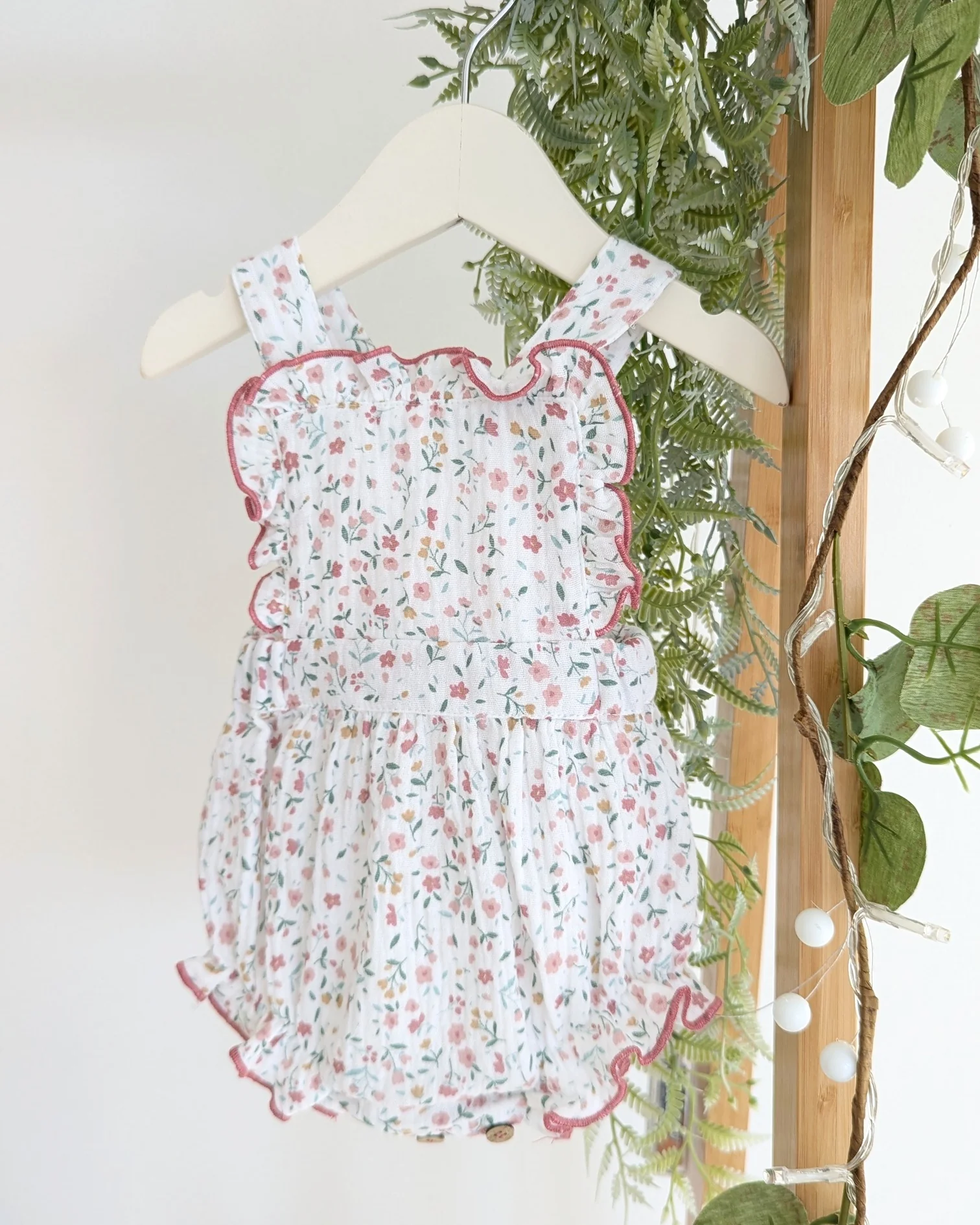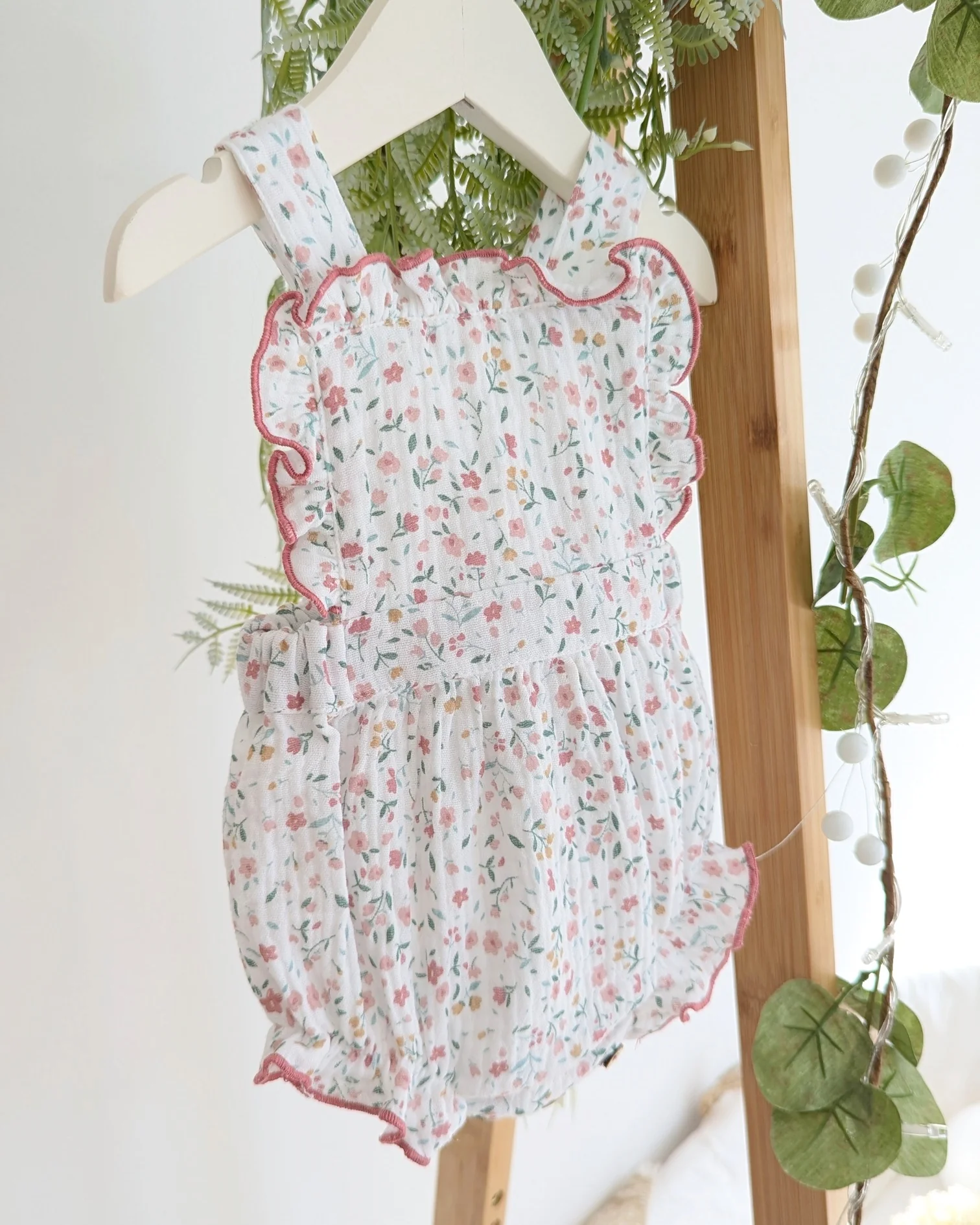 Precioso pelele de algodón 100% para niña con estampado de florecitas super dulce