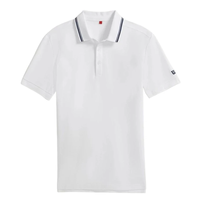 El Polo Wilson M Team Pique Blanco, fabricado con un tejido suave y ligero, ideal para sus partidos.
