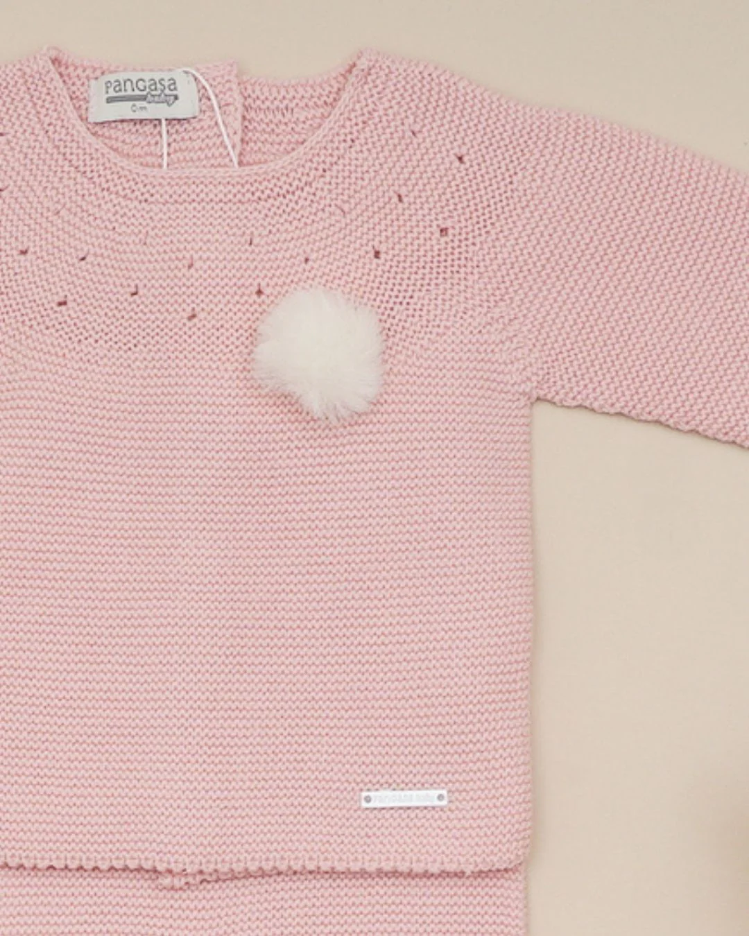 Este conjunto de primera puesta de la Nueva colección Otoño Invierno 2025 2026 de Pangasa Baby es ideal para mimar a tu recién nacido con suavidad, estilo y calidez. Confeccionado en punto bobo de algodón con un delicado color rosa empolvado, su diseño sencillo pero elegante enamora a primera vista. Lleva un coqueto pompón blanco y un canesú calado que aporta un toque artesanal encantador.