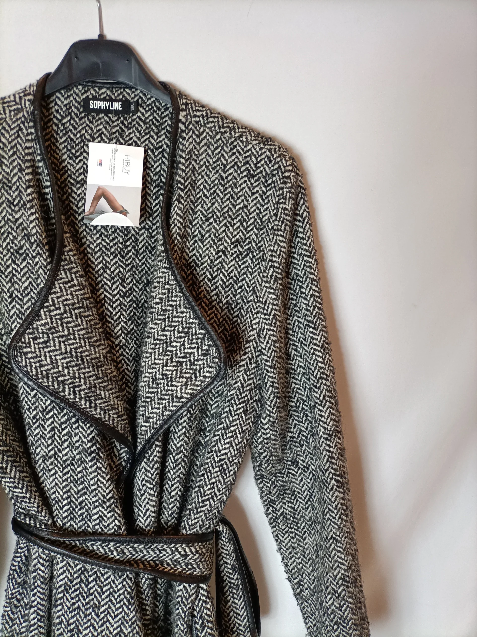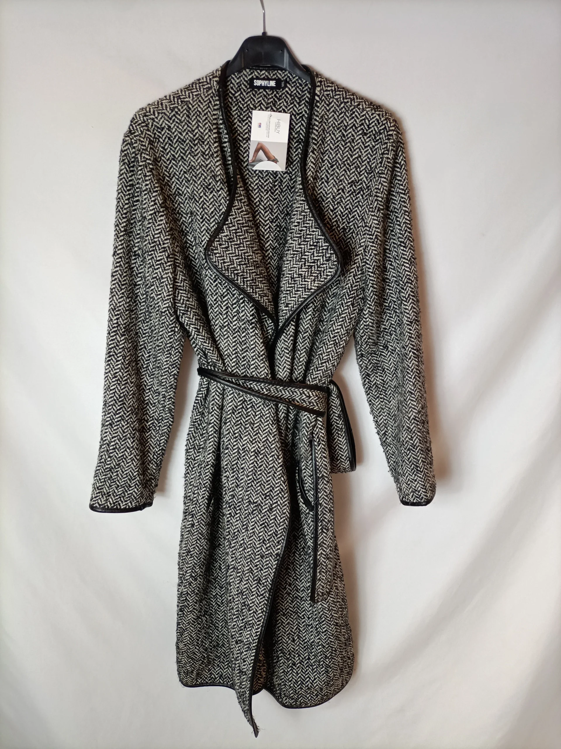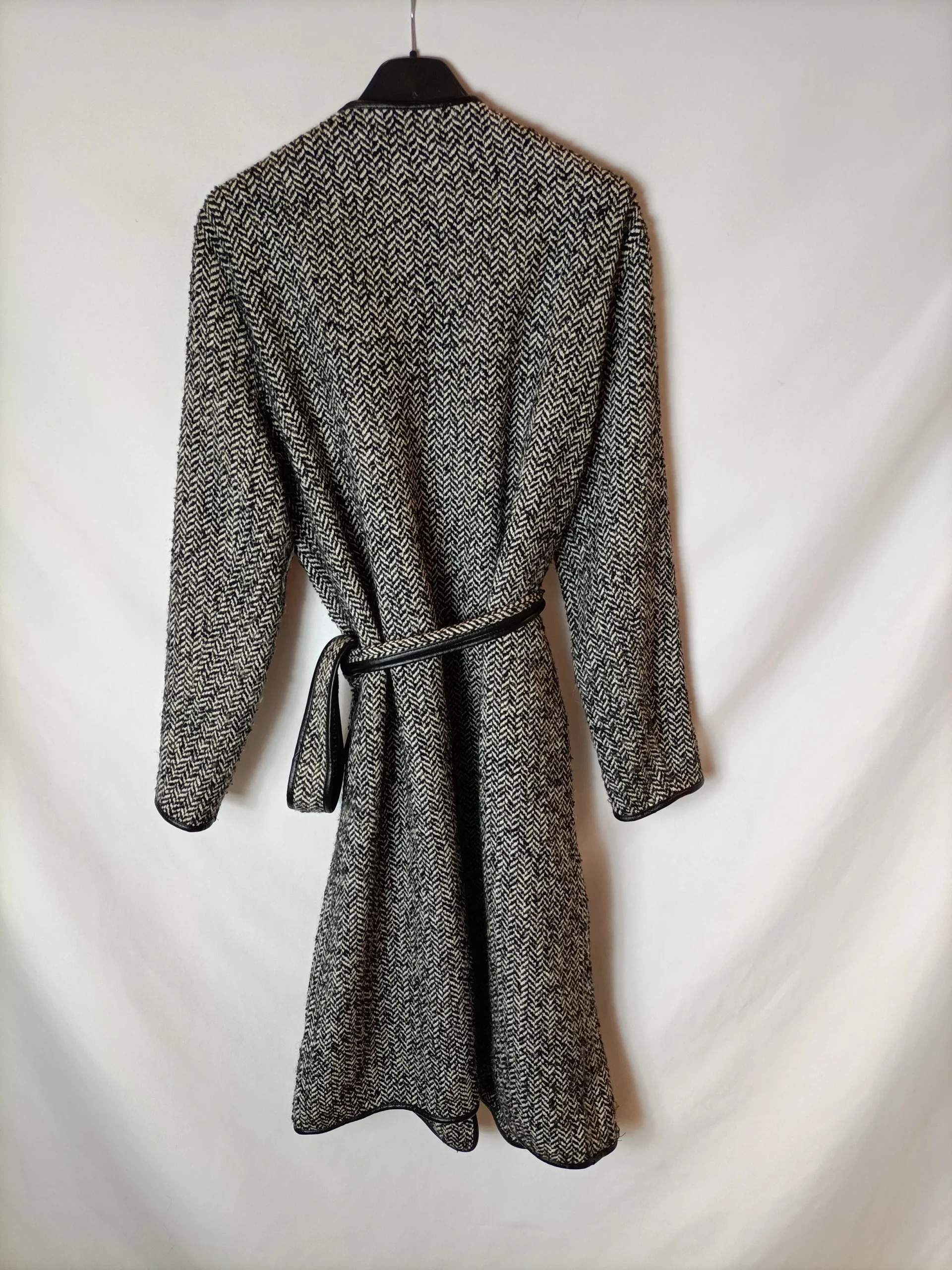 Abrigo espiga blanco y negro con cinturón. T M/L