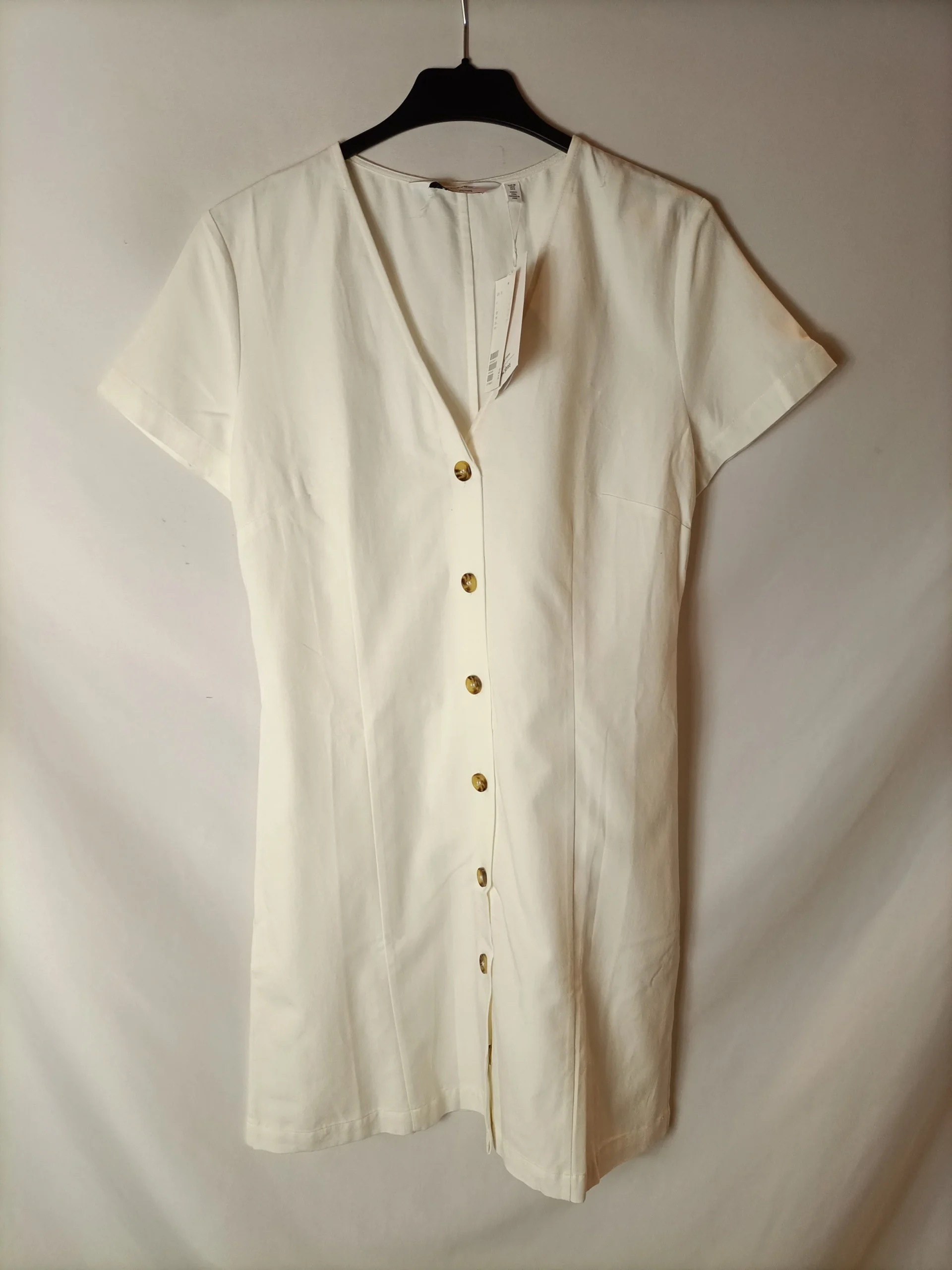 NUEVO CON ETIQUETA. Vestido corto blanco roto abotonado. De sisa a sisa 40 cm