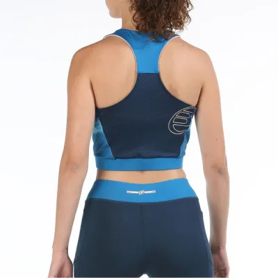 Top Bullpadel Erdain, largo con estampado en la parte delantera y acabado de mesh en la espalda para favorecer la ventilación. Esto, sumado a estar fabricado en poliéster elástico con tecnología Drynamic incorporada, lo convertirán en tu aliado perfecto para mantener la humedad a raya durante el juego.